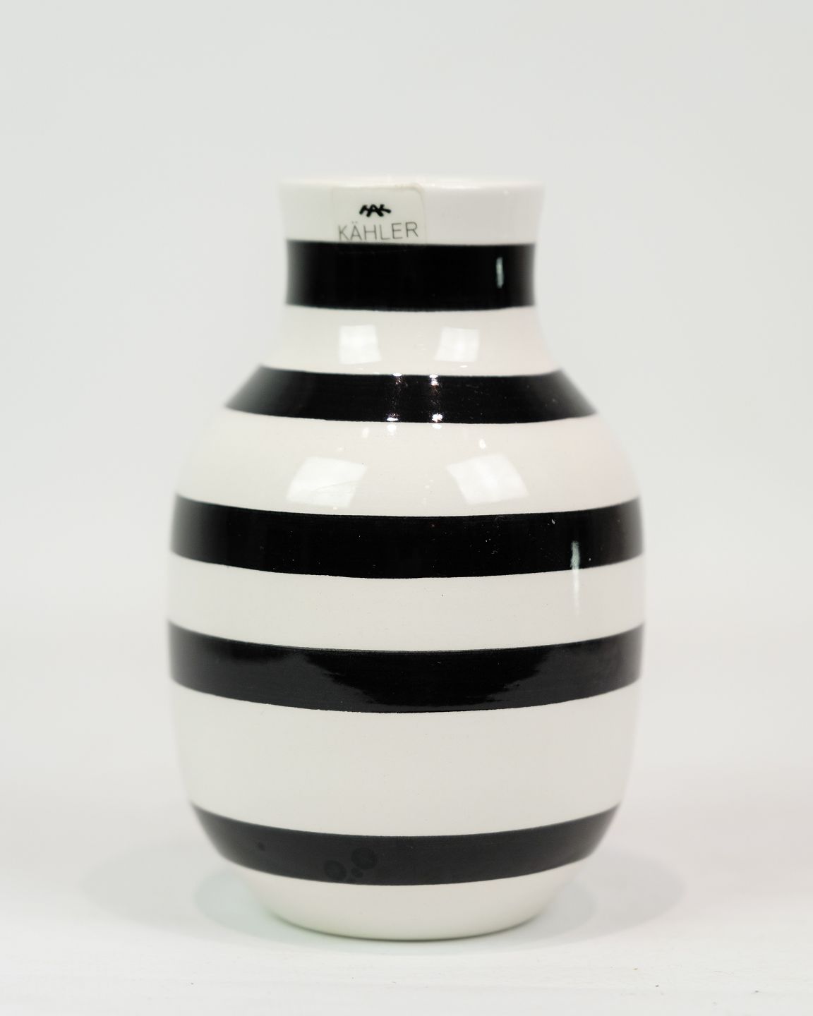 Kähler er en uundværlig favorit i utallige hjem takket være sit klassiske udseende og moderne design. Denne smukke vase, der er en del af en serie, passer perfekt til det skandinaviske hjem med sit enkle, men alligevel iøjnefaldende udtryk. Hver Kähler-vase i serien er håndmalet, hvilket betyder, at ingen to er helt ens. Den unikke charme og personlighed, der følger med variationerne i farve og bredde på striberne, gør hver vase til et kunstværk i sig selv. Tilføj et strejf af elegance og individualitet til dit hjem med en Kähler-vase, der vil pryde ethvert rum med sin skønhed og unikke karakter.