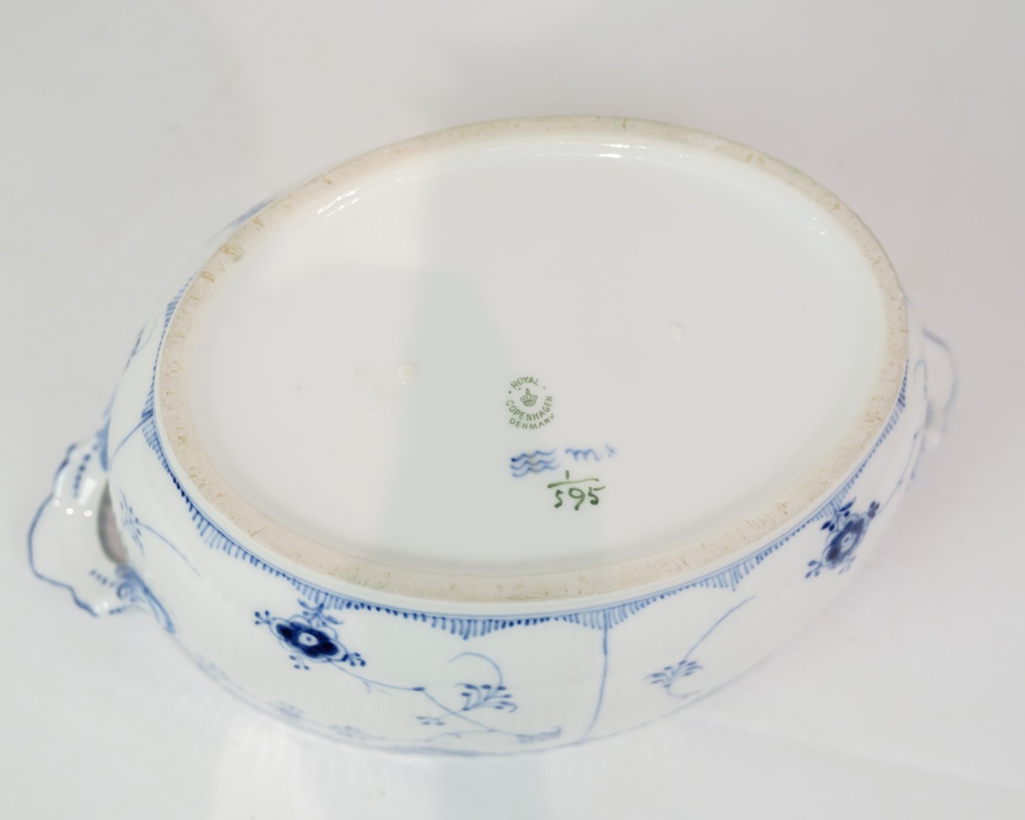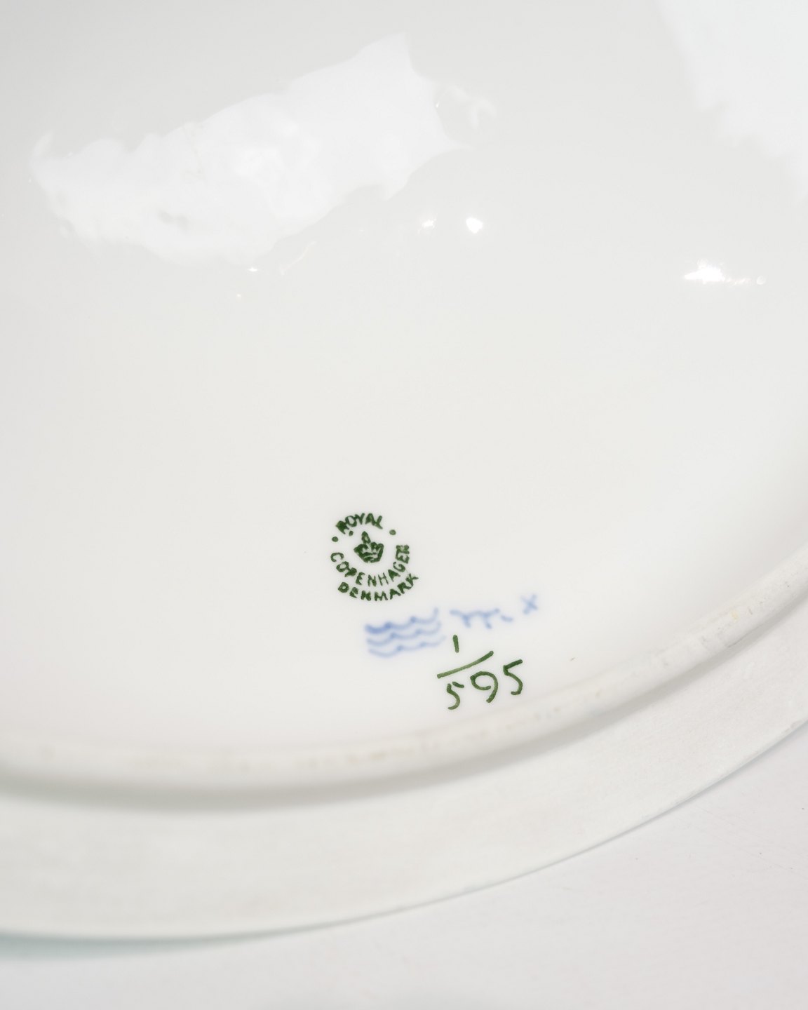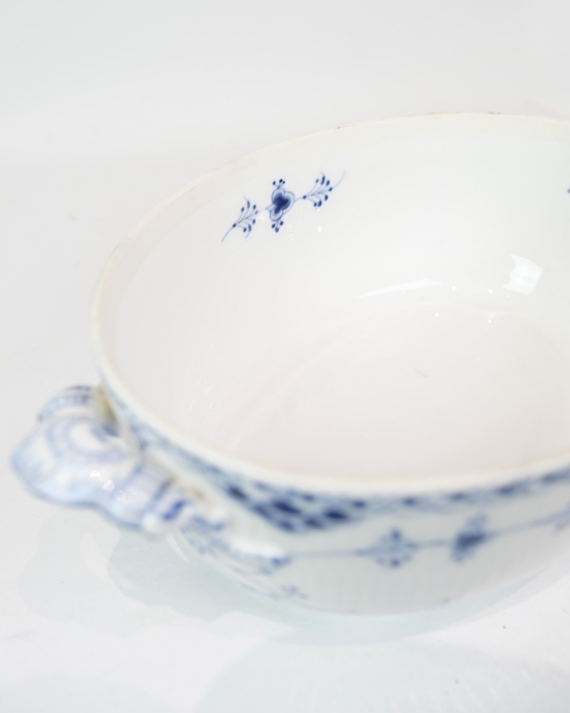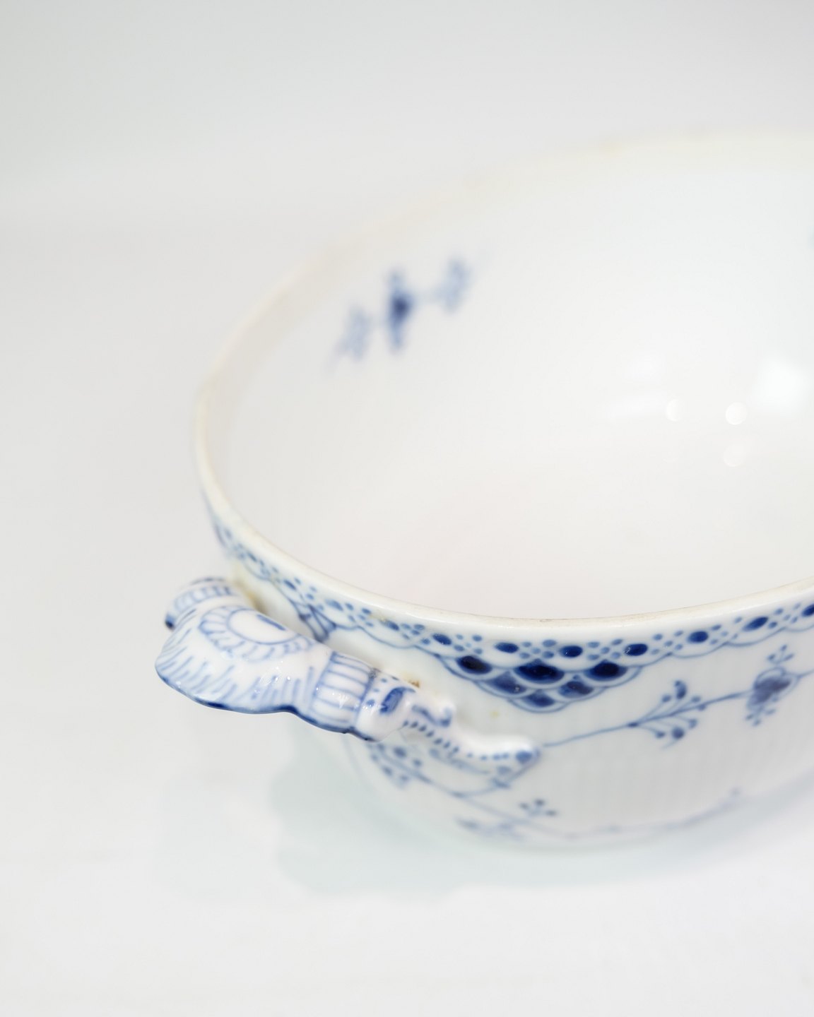 Terrinen er en Model 1109 i serien Musselmalet Helblonde, produceret af Royal Copenhagen. Denne terrin er et eksempel på dansk porcelæn af høj kvalitet og er kendetegnet ved det ikoniske Musselmalet Helblonde mønster. Royal Copenhagen er berømt for sit elegante porcelæn, og dette design er ingen undtagelse. Terrinen, med sit delikate mønster af muslinger og blonder, er et tidløst og klassisk stykke, der tilføjer raffinement til enhver spisestue eller borddækning. Det er et symbol på den fine håndværksmæssige tradition og æstetiske skønhed, som Royal Copenhagen er kendt og værdsat for verden over.
