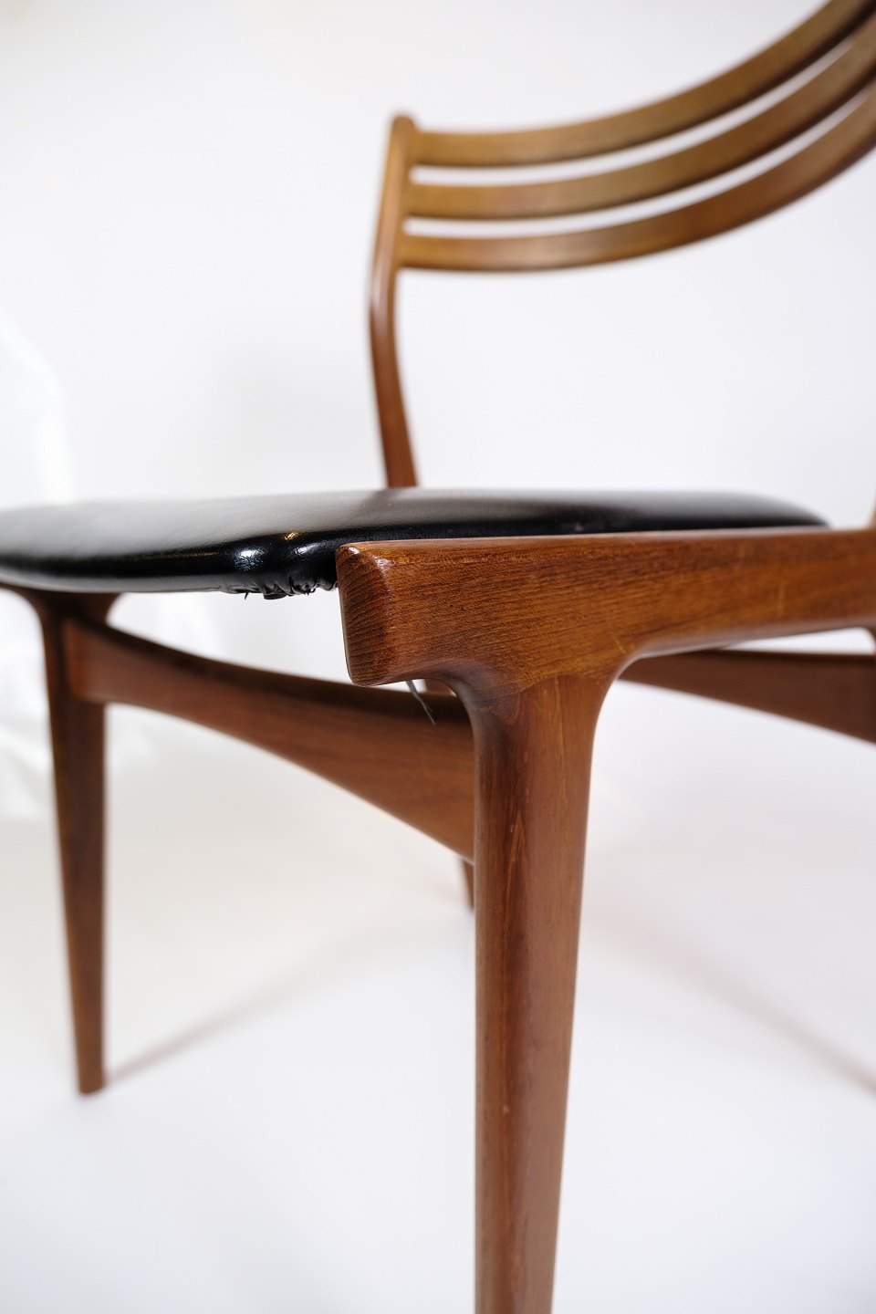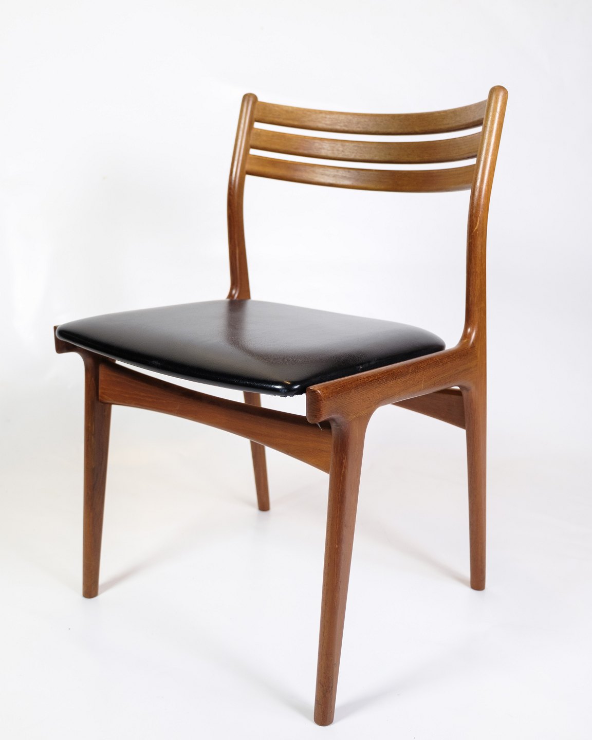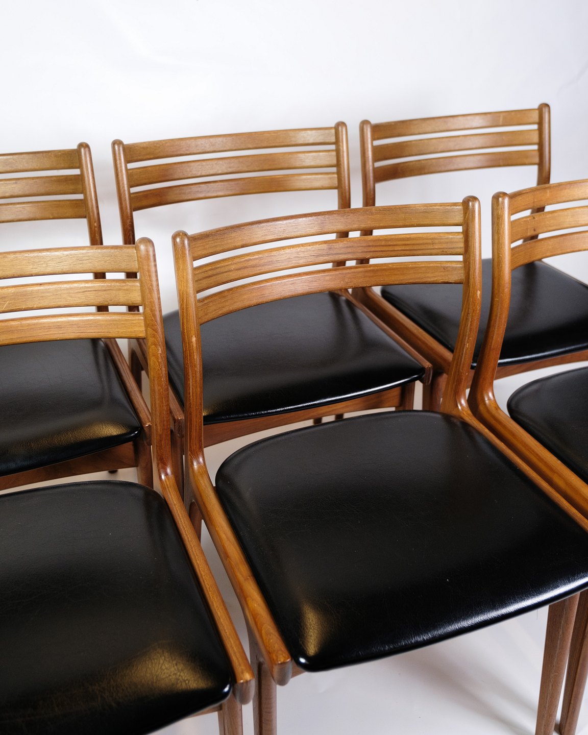 Set of 6 Dining Room Chairs - Model U20 - Teak - Black leather - Johannes Andersen - Uldum Møbelfabrik - 1960