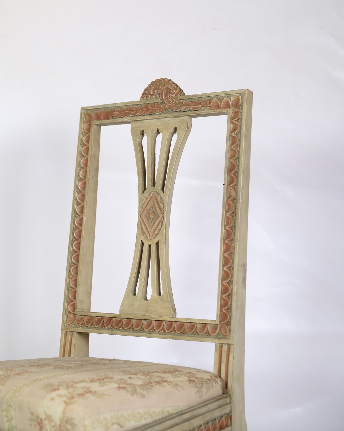 SoldThis set of two Gustavian style chairs from 1880 is a beautiful expression of early European furniture art and aesthetics. Inspired by the Swedish Gustavian period, these chairs are characterized by their elegant and refined design.