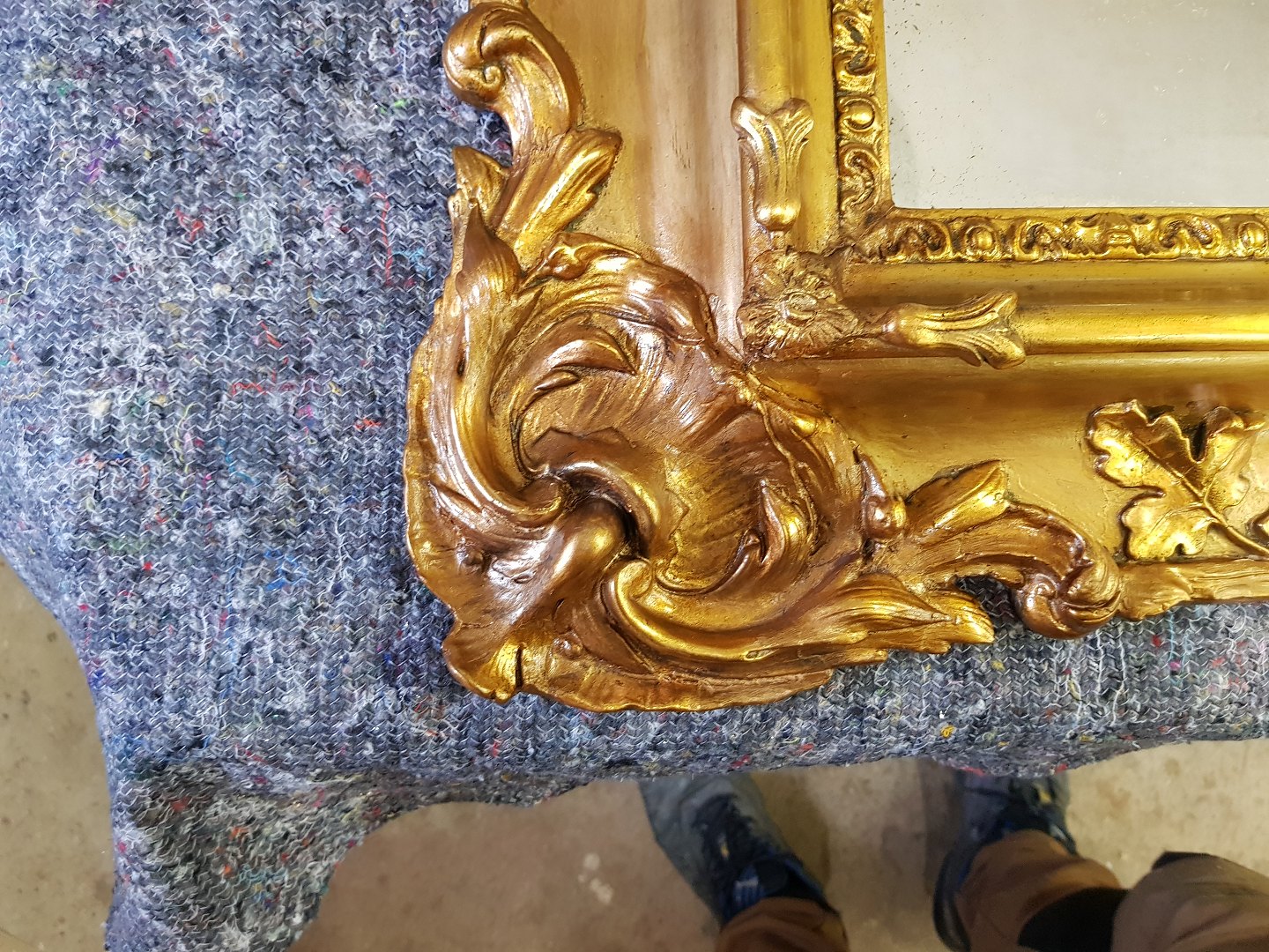 Vores dygtige snedkere har omhyggeligt repareret og genskabt spejlet til sin oprindelige stand.