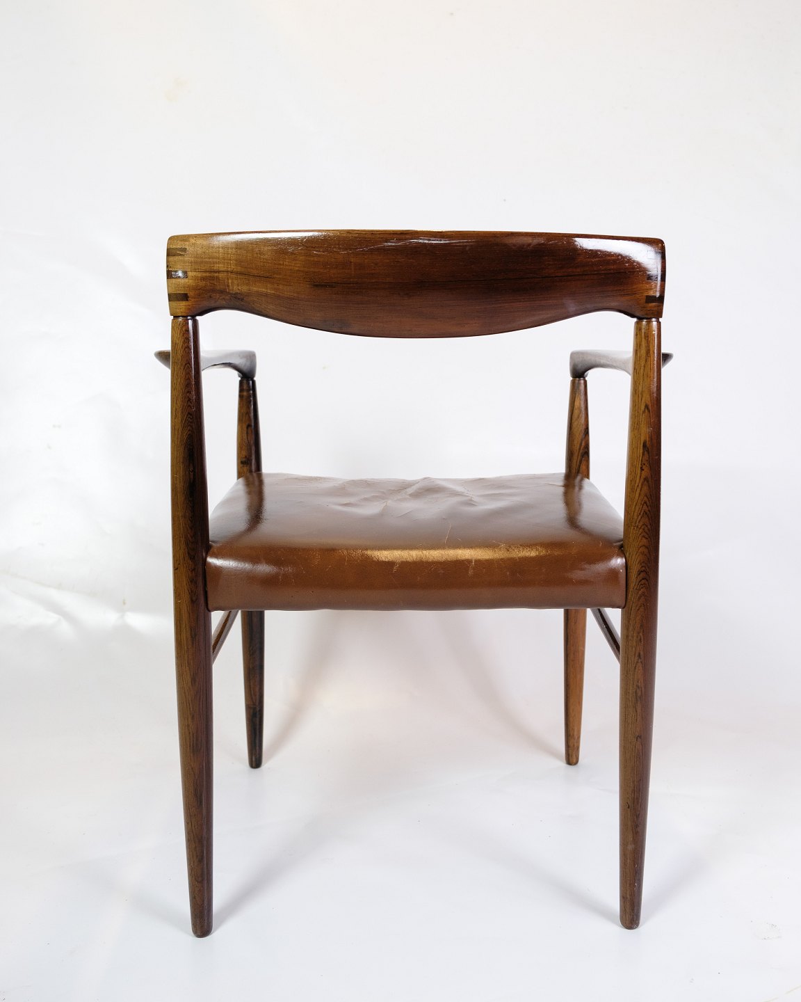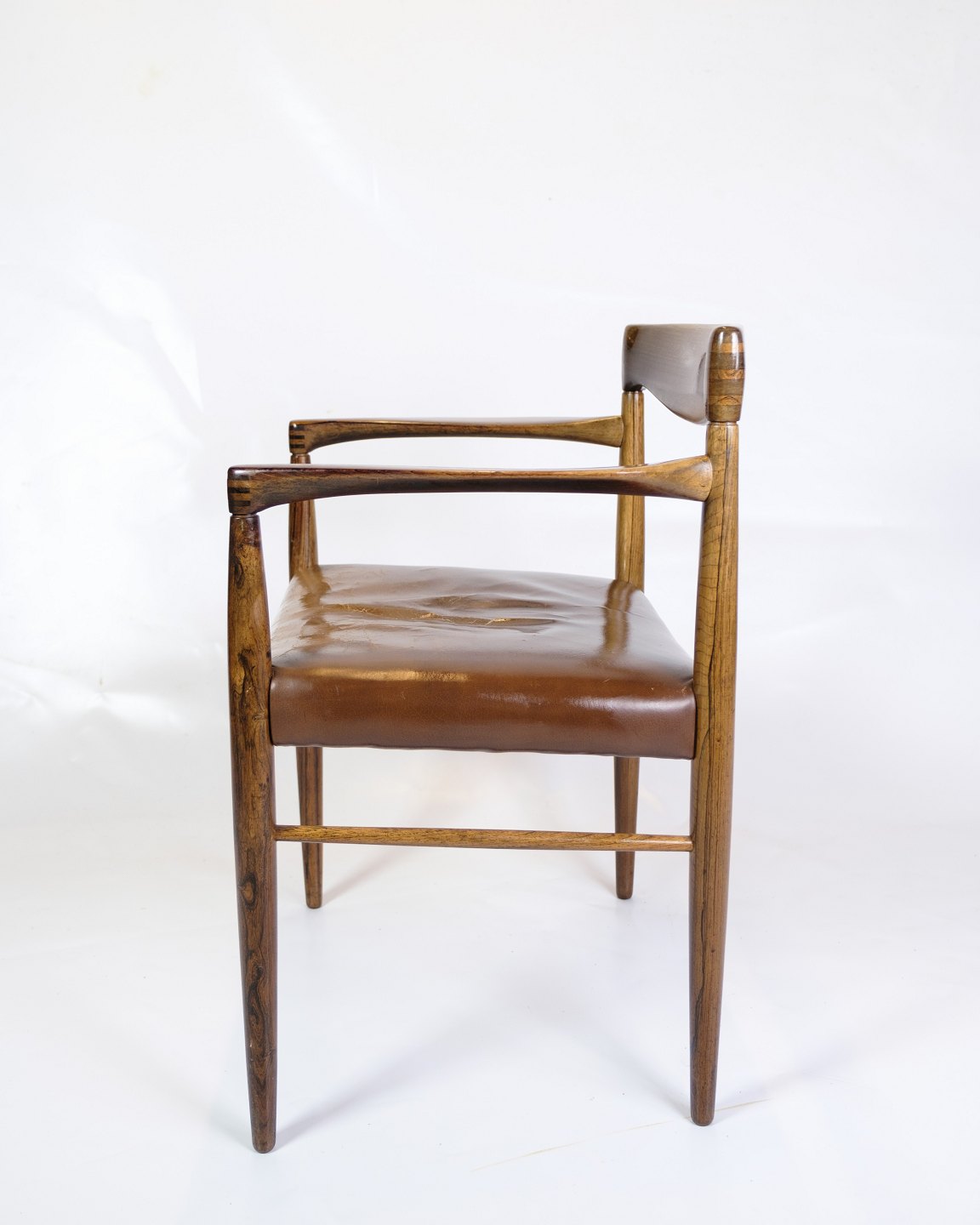This armchair is a fine example of Danish furniture art from the 1960s, designed by Henry W. Klein and manufactured by Bramin. With its rosewood frame and cognac leather seat, this chair exudes timeless elegance and exceptional craftsmanship.