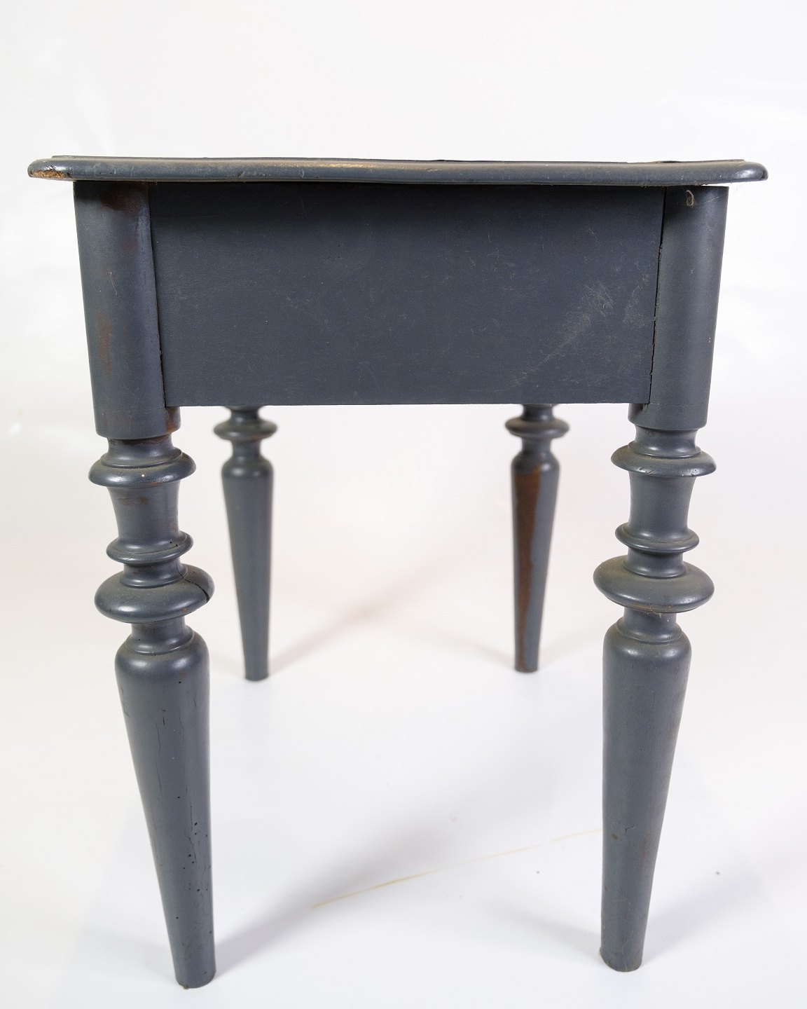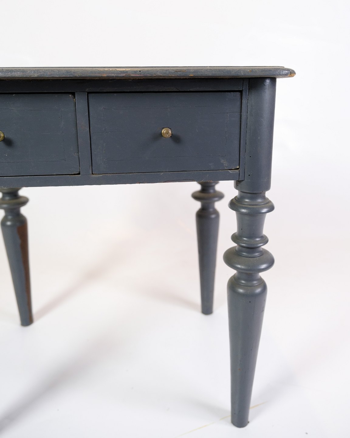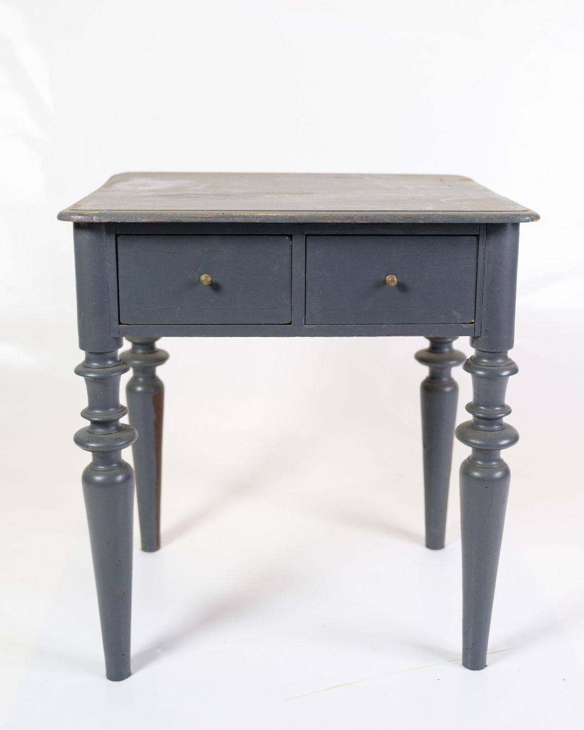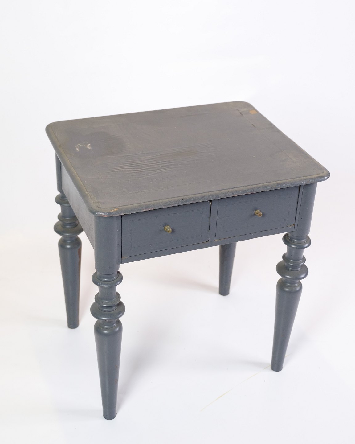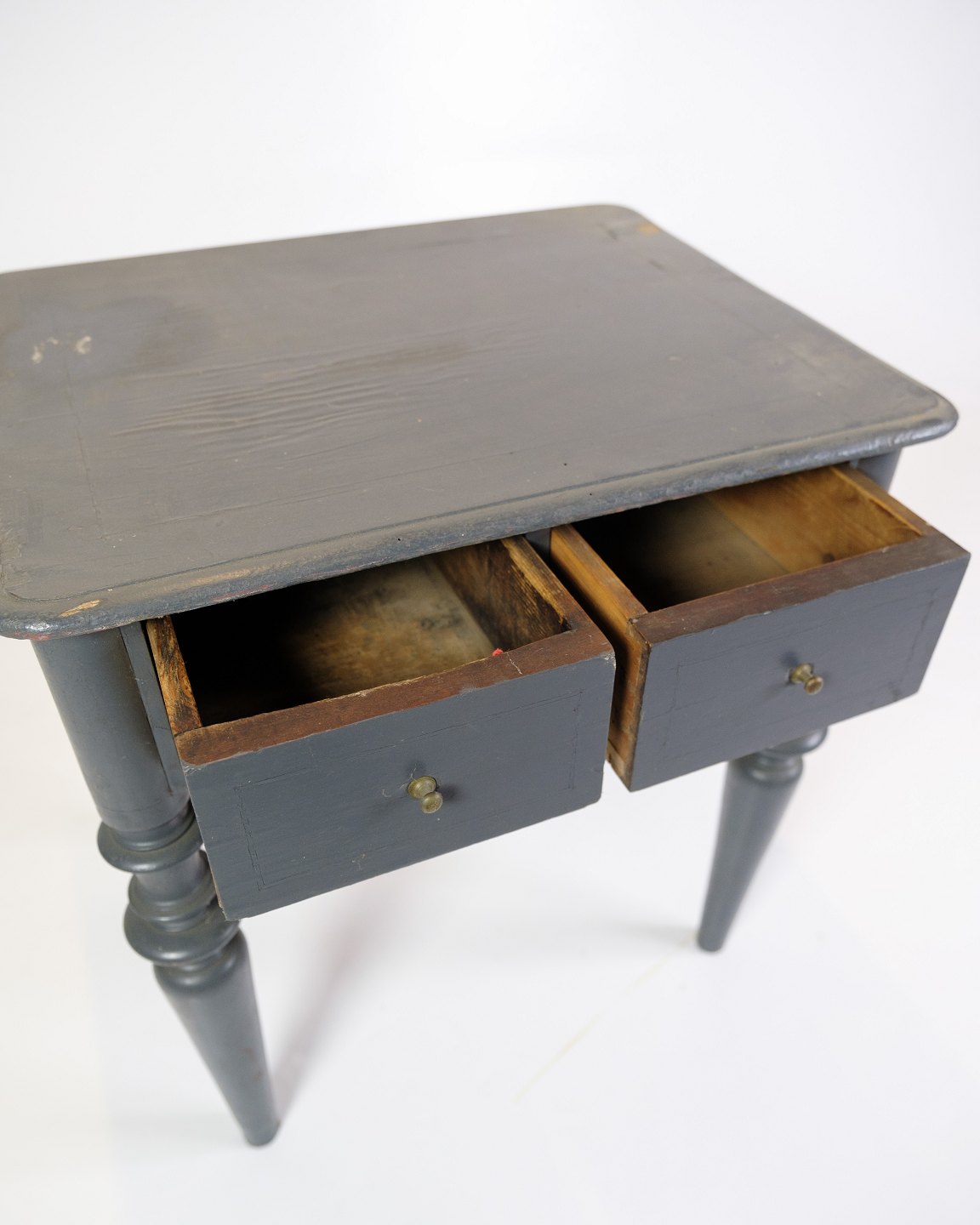 Antique Side table from around 1890, hand painted in an enchanting grey-blue colour. This beautiful side table exudes true vintage charm and historic elegance. With two spacious drawers for practical storage, this piece of furniture combines function with aesthetics in an enchanting way.