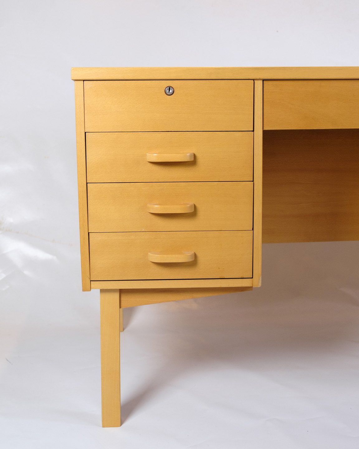 This desk is a great example of Danish design from the 1960s. Made from beech wood, it exudes a timeless elegance and simplicity that is characteristic of Scandinavian design. With its slim and functional design, this desk fits perfectly into modern as well as classic interiors.