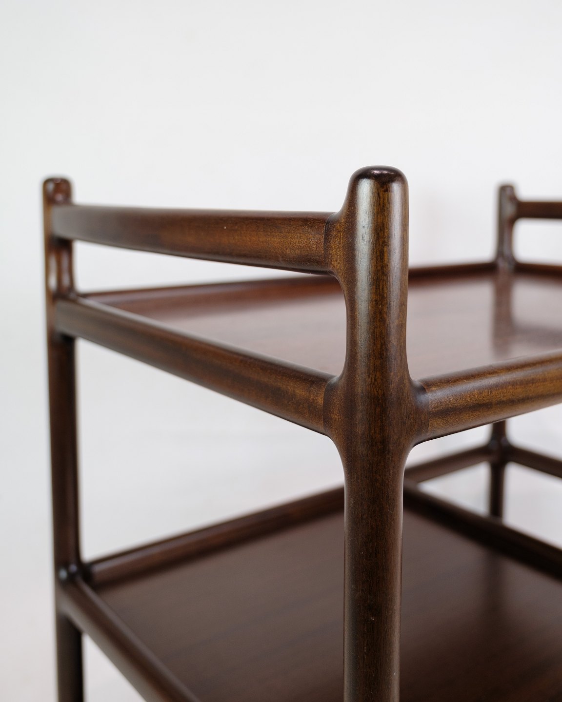 SolgtDenne serveringsvogn er et fortryllende eksempel på Henning Korch´s designæstetik fra 1960'erne og blev produceret af Silkeborg Møbelfabrik. Lavet af mahognitræ udstråler vognen en varm og indbydende atmosfære, der er typisk for denne æra af dansk design.
