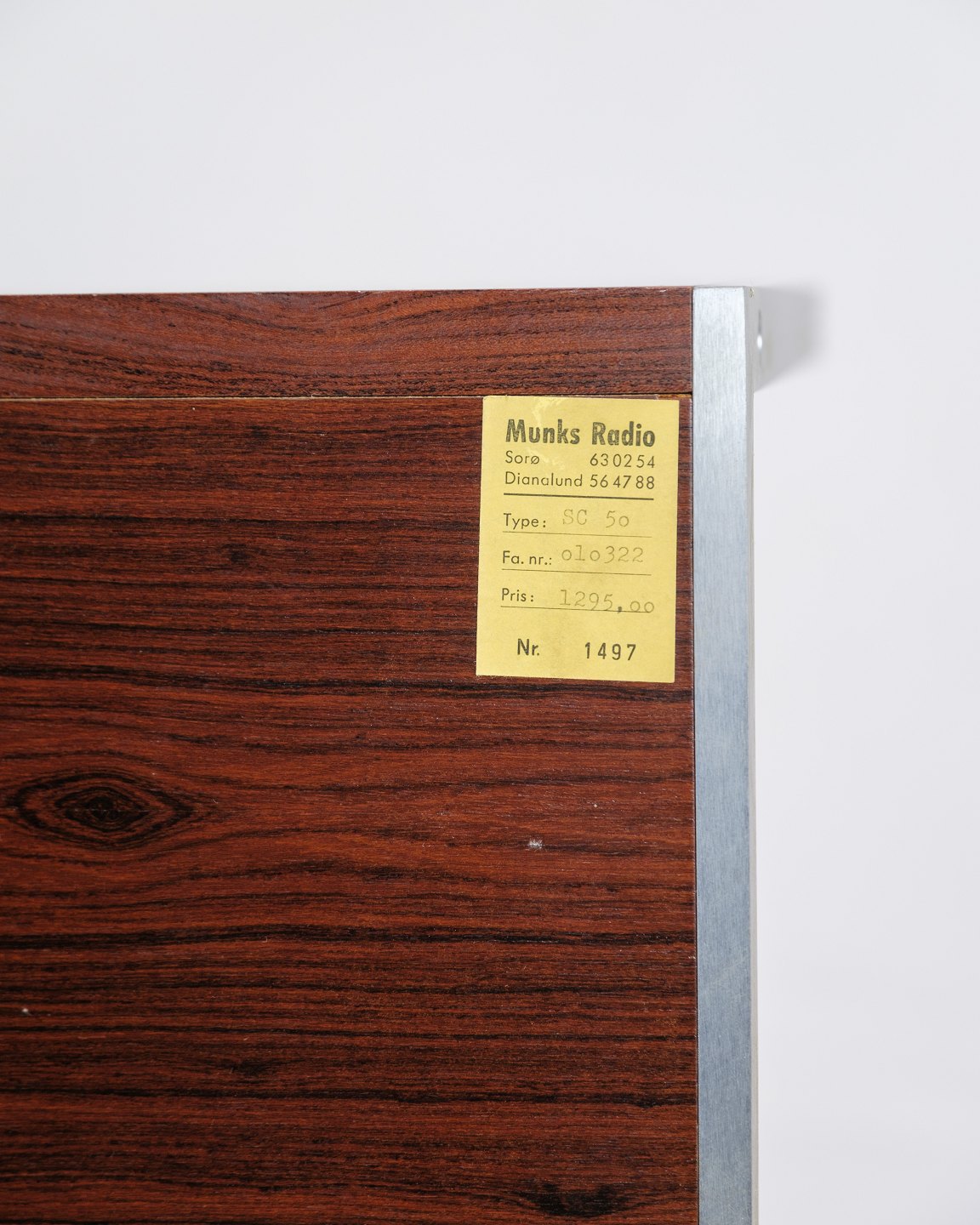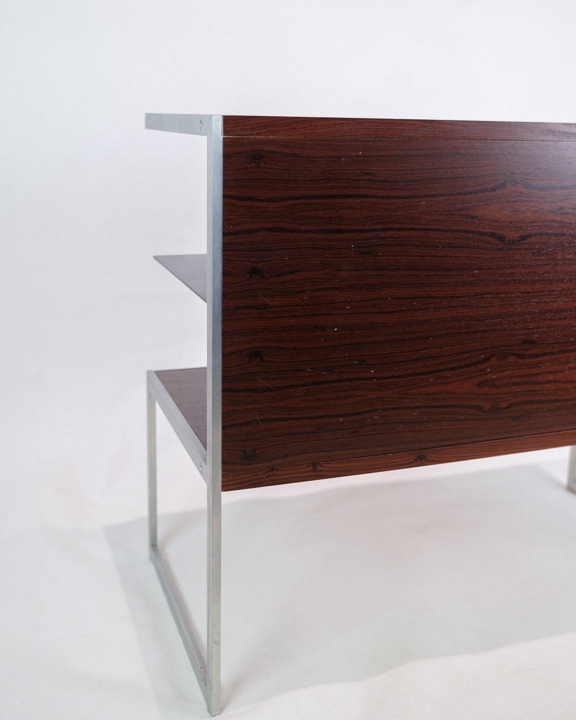 Palisanderets varme tone og aluminiumets slanke profil skaber en kontrastfyldt, men harmonisk helhed, der vil tilføje karakter til enhver stue eller rum. Møblet er designet til at matche Bang & Olufsens ikoniske lyd- og videoudstyr, hvilket giver et ensartet og stilfuldt udseende.