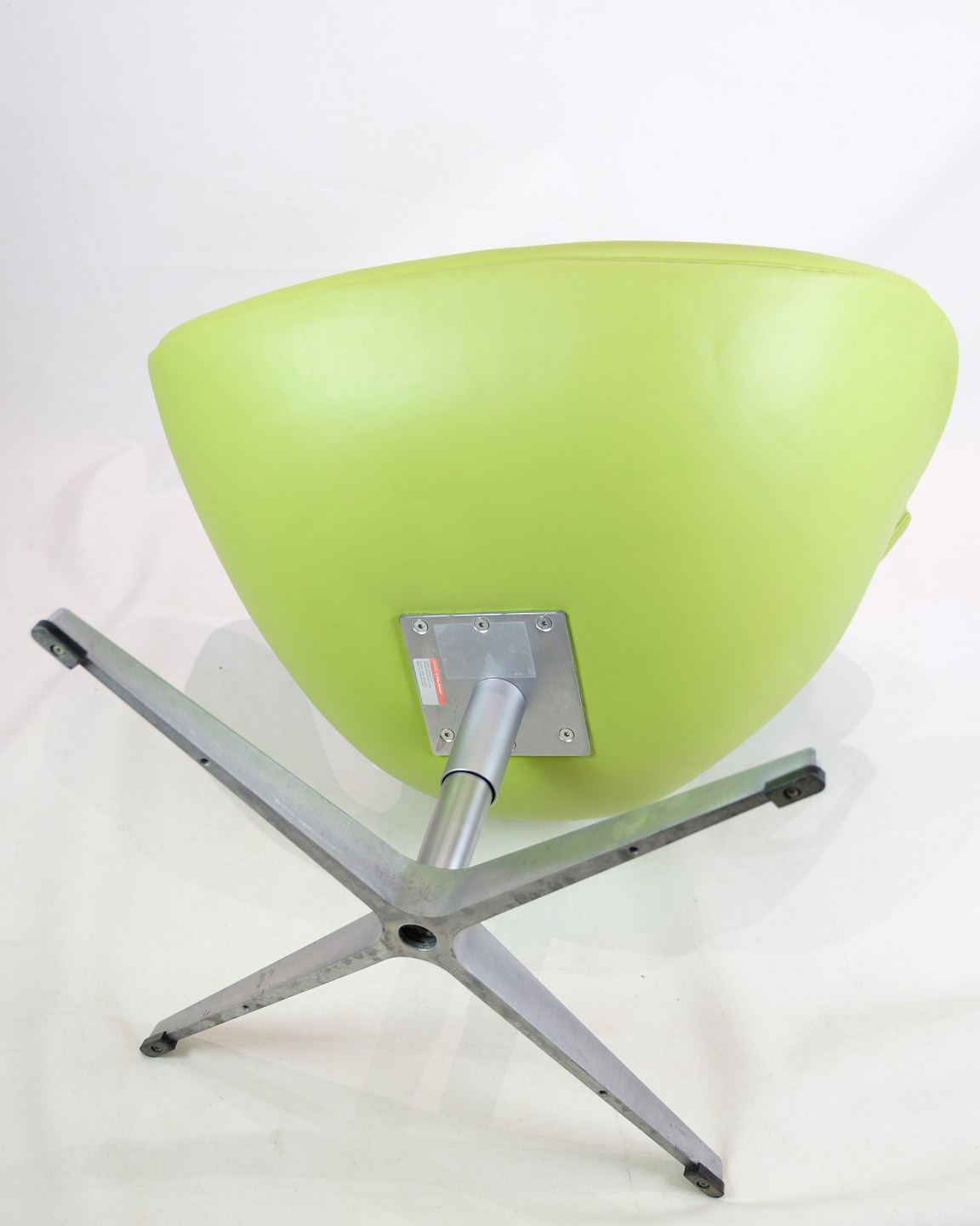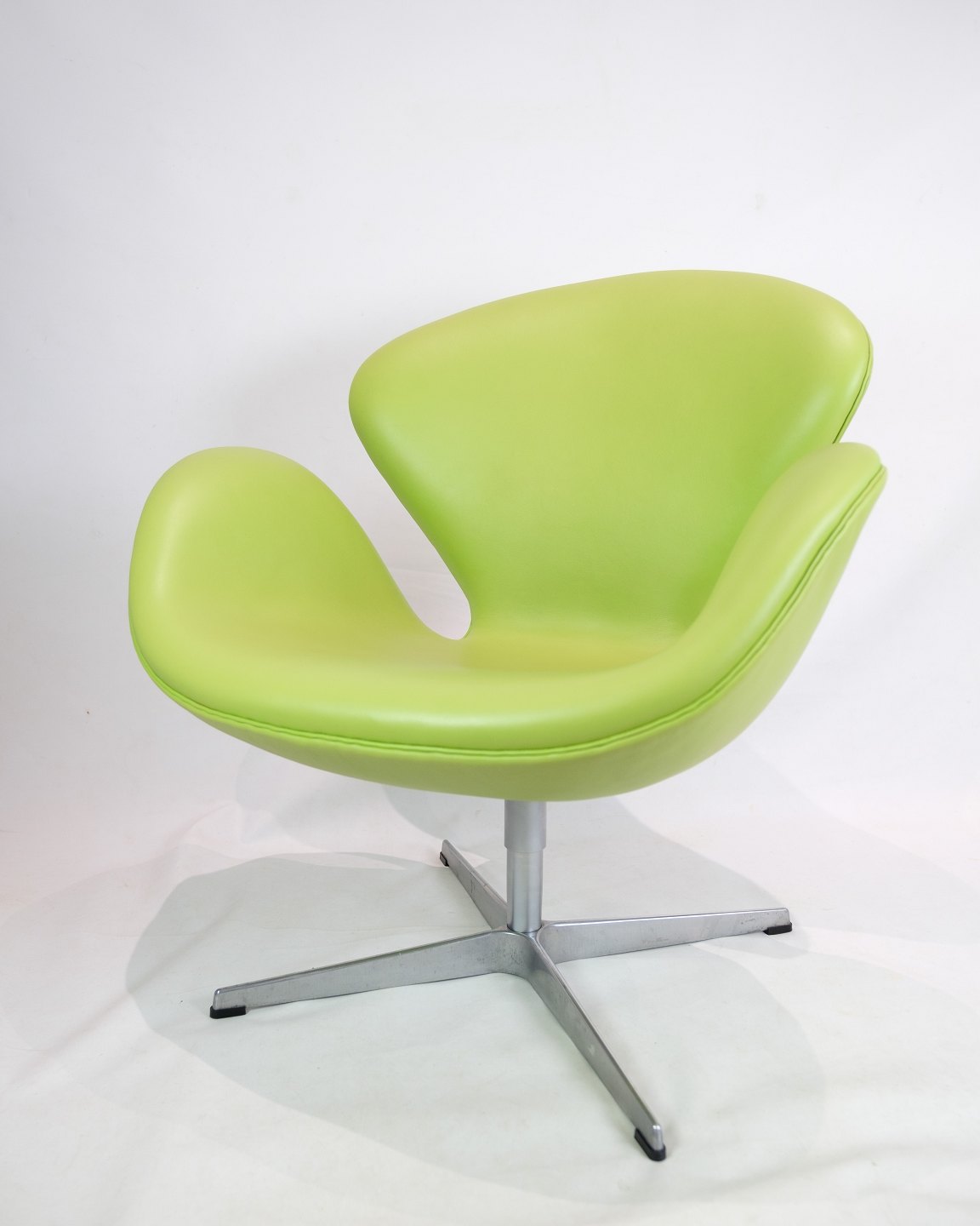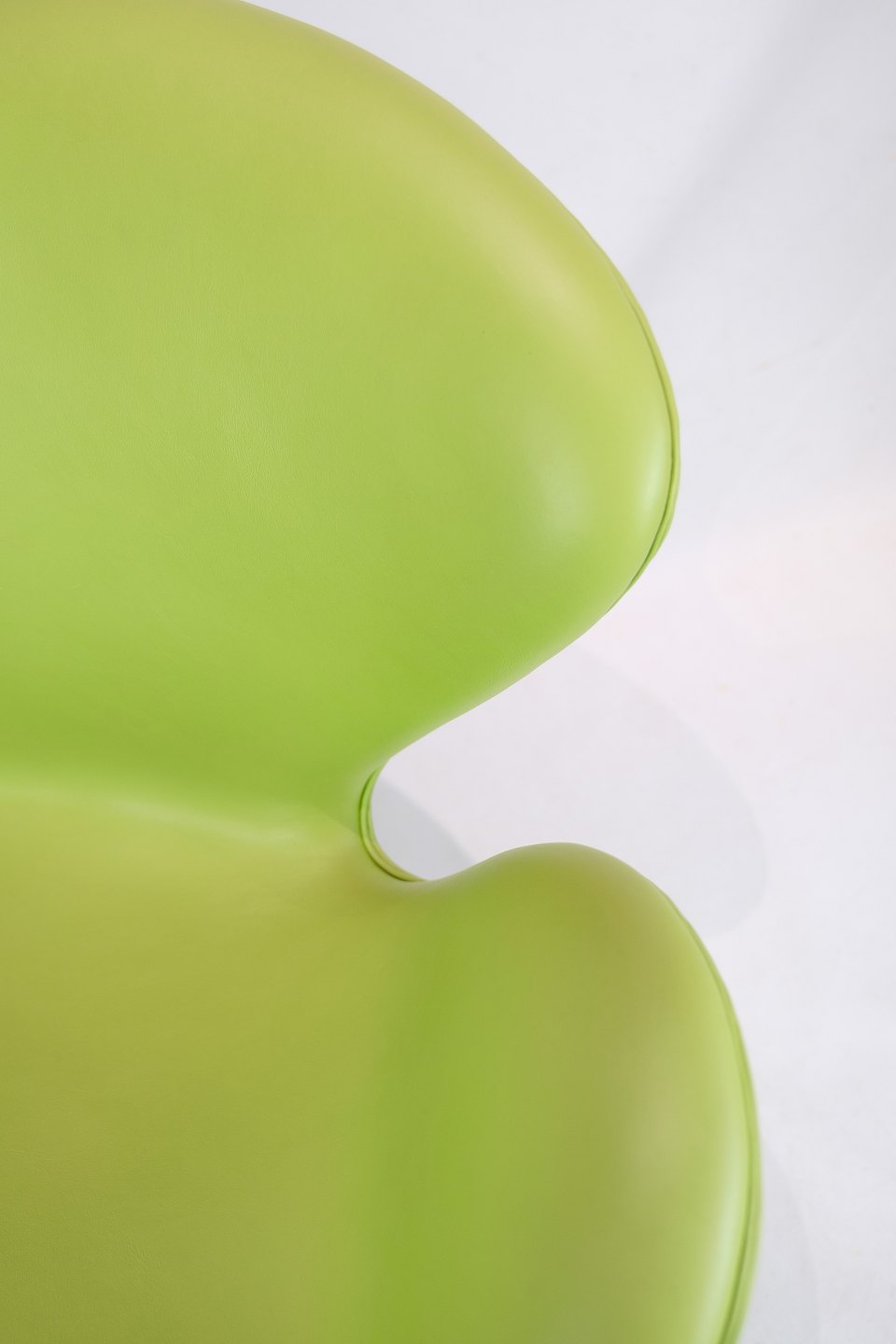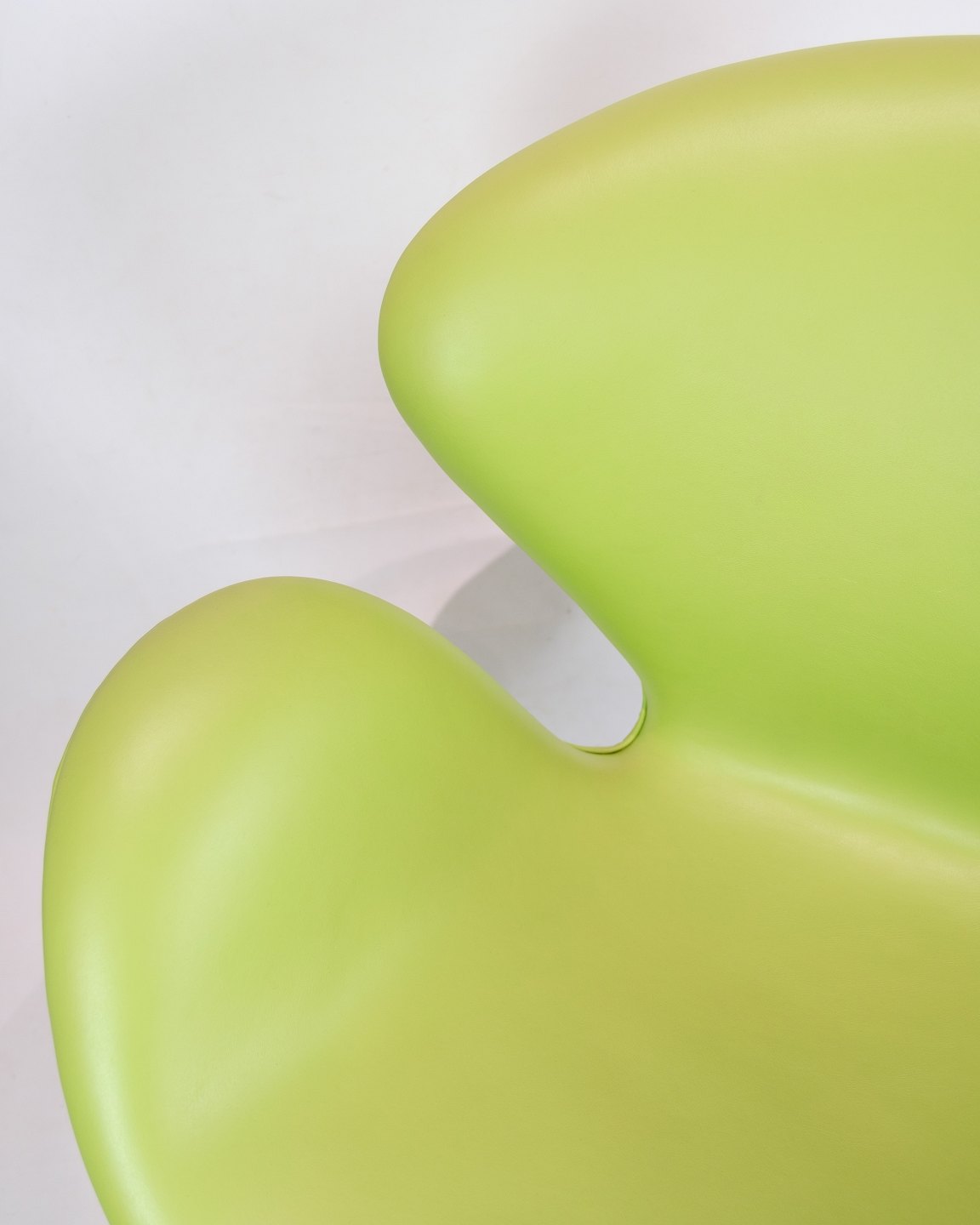 Denne særlige udgave af "Svanen" fra 2007 præsenterer et livligt og dristigt valg af limegrønt læder, der tilføjer en friskhed til enhver indretning. Arne Jacobsens vision om at skabe møbler, der både er smukke og behagelige, realiseres fuldt ud i denne stol.