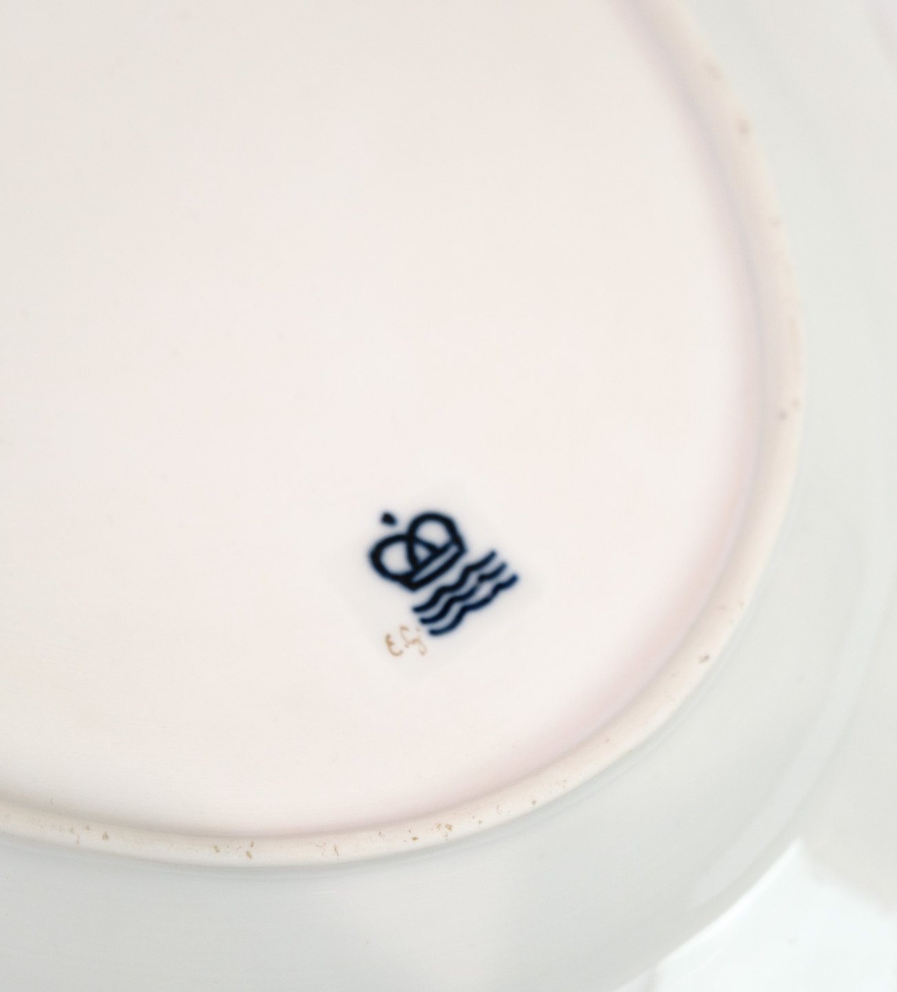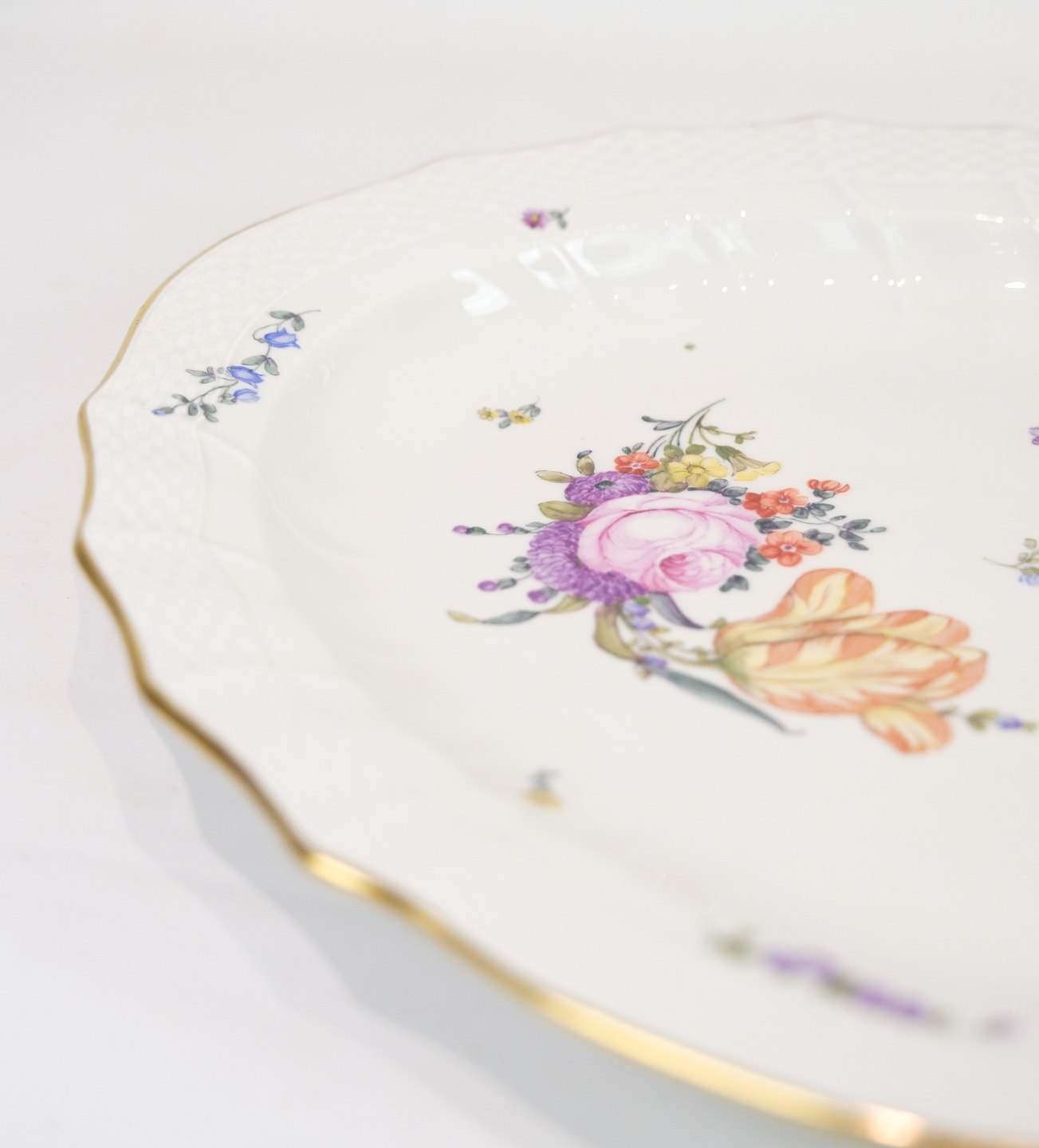 Dish of Royal porcelain with patterned Saxon flower decorated on the edge with gold. Manufactured by Royal Copenhagen in approx. 1923, where all their goods have been hand painted and subsequently become very rare. The dish is without flaws or defects.