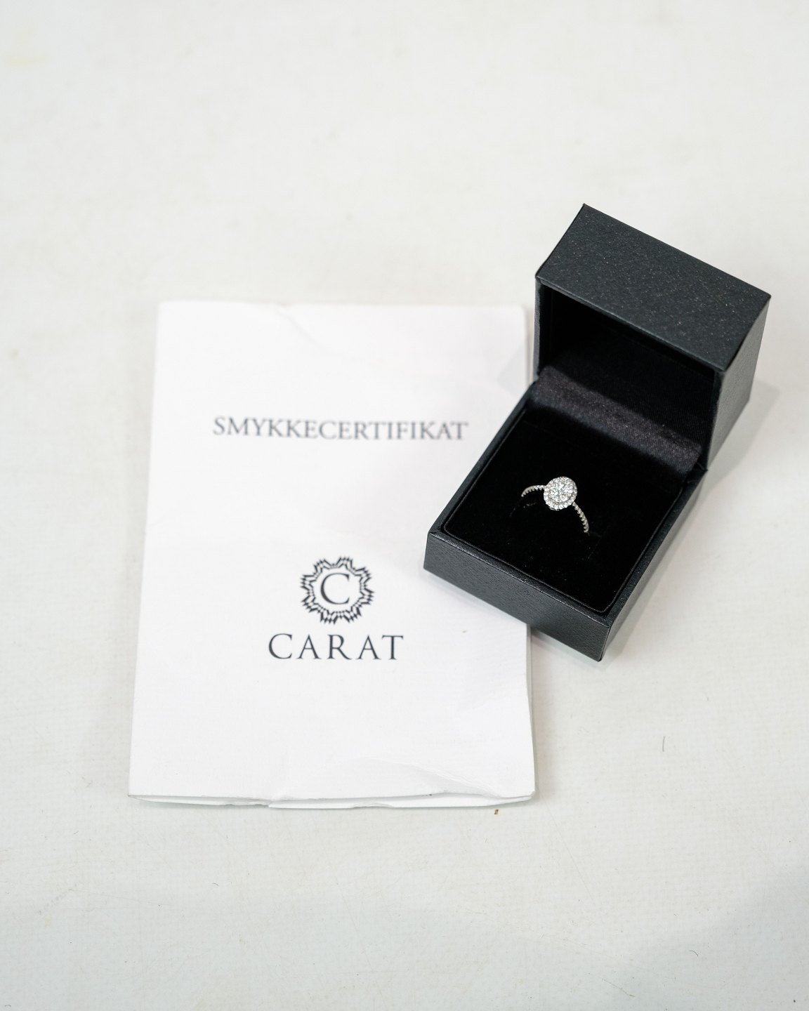 SoldA beautiful diamond ring, handmade by Carat Diamanter's skilled goldsmiths. The ring is made of 18 carat white gold, decorated with 53 diamonds, all of which are hand-set. The ring comes with both an original box and a jewelry certificate, which confirms its authenticity and quality.