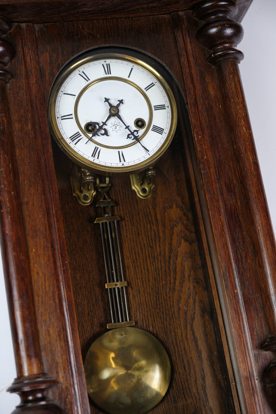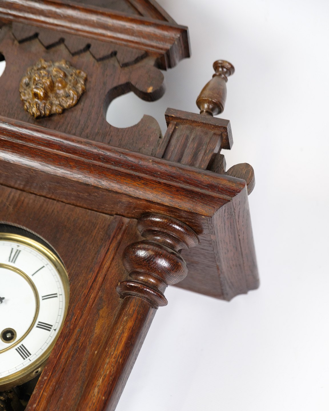 Antique wall clock from the 1920s, manufactured by Junghans in oak.