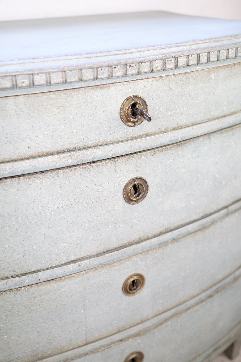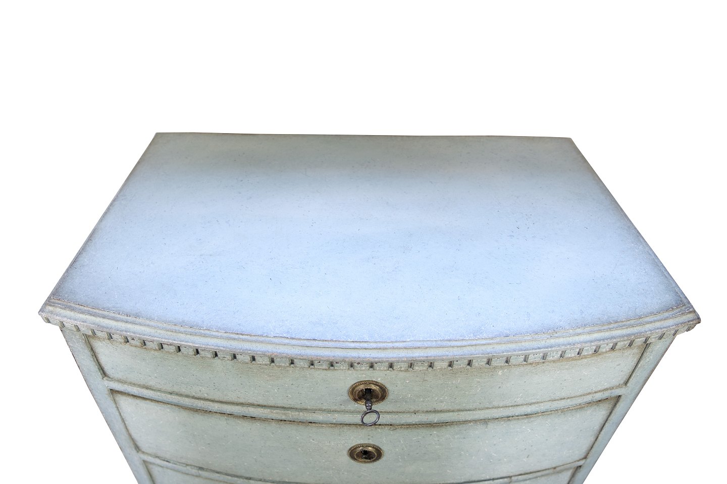 Please contact us for price informationOriginal painted chest of drawers from the Louis Seize period, from Copenhagen, approx. The 1790s. The chest of drawers is in a greenish patinated colour, which reflects the aesthetics and style of the time. Louis Seize furniture is characterized by its straight lines and classic shapes, and was often used in stately homes. This chest of drawers is a good example of the craftsmanship of the time, with the color and patina adding a historical charm. The chest of drawers was used for storage in bedrooms or living rooms in the finer homes of this period.