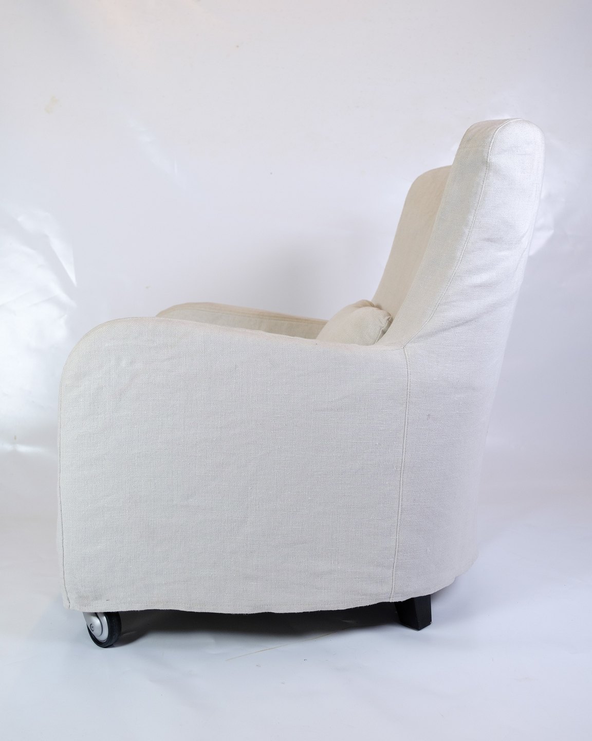 SoldThe Micromilla armchair is a masterpiece that stands out with its stylish design and comfortable functions. Upholstered in white fabric, this chair exudes a timeless elegance that fits perfectly into any modern interior.
