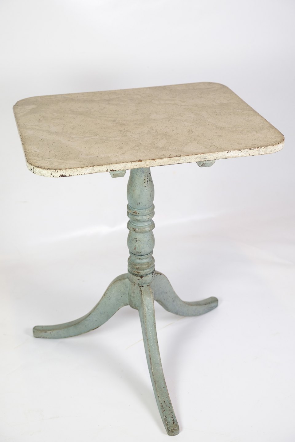Original Malet Søjlebord/Sidebord - Med Vip funktion - Blå & Grå Farver - 1840erne
