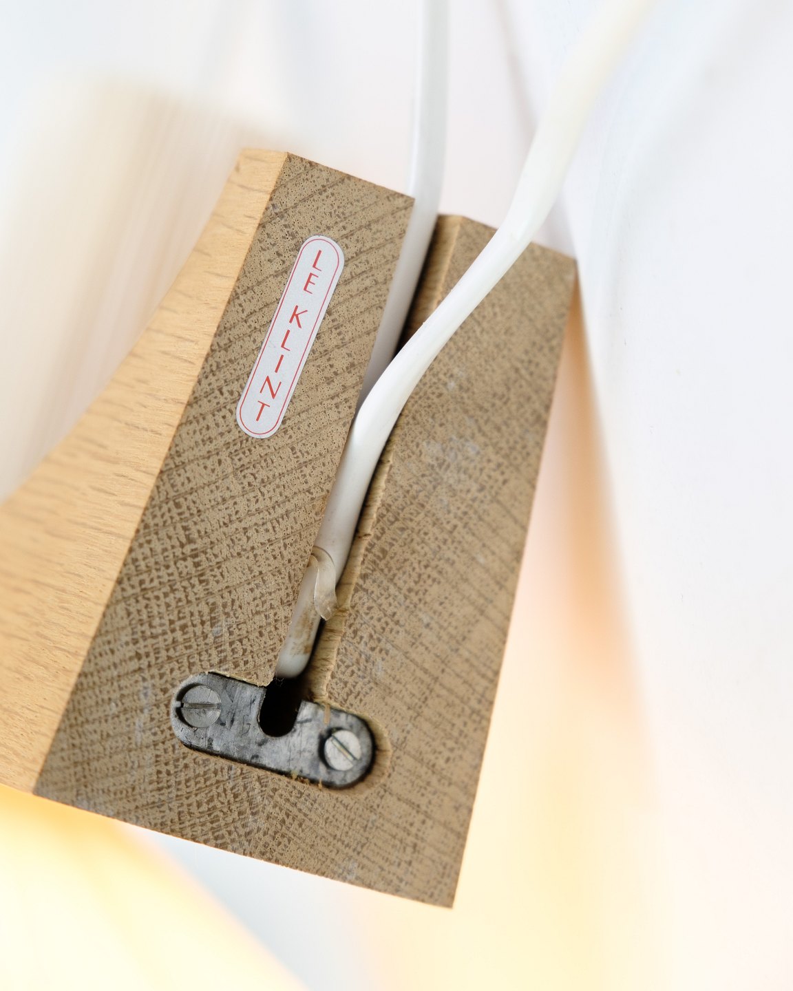Wall lamp in light oak, designed by Vilhelm Wohlert and manufactured by Le Klint. The wall lamp is model 204 and has a very simple and minimalist design. It is a sought-after model and can be seen in our exhibition.