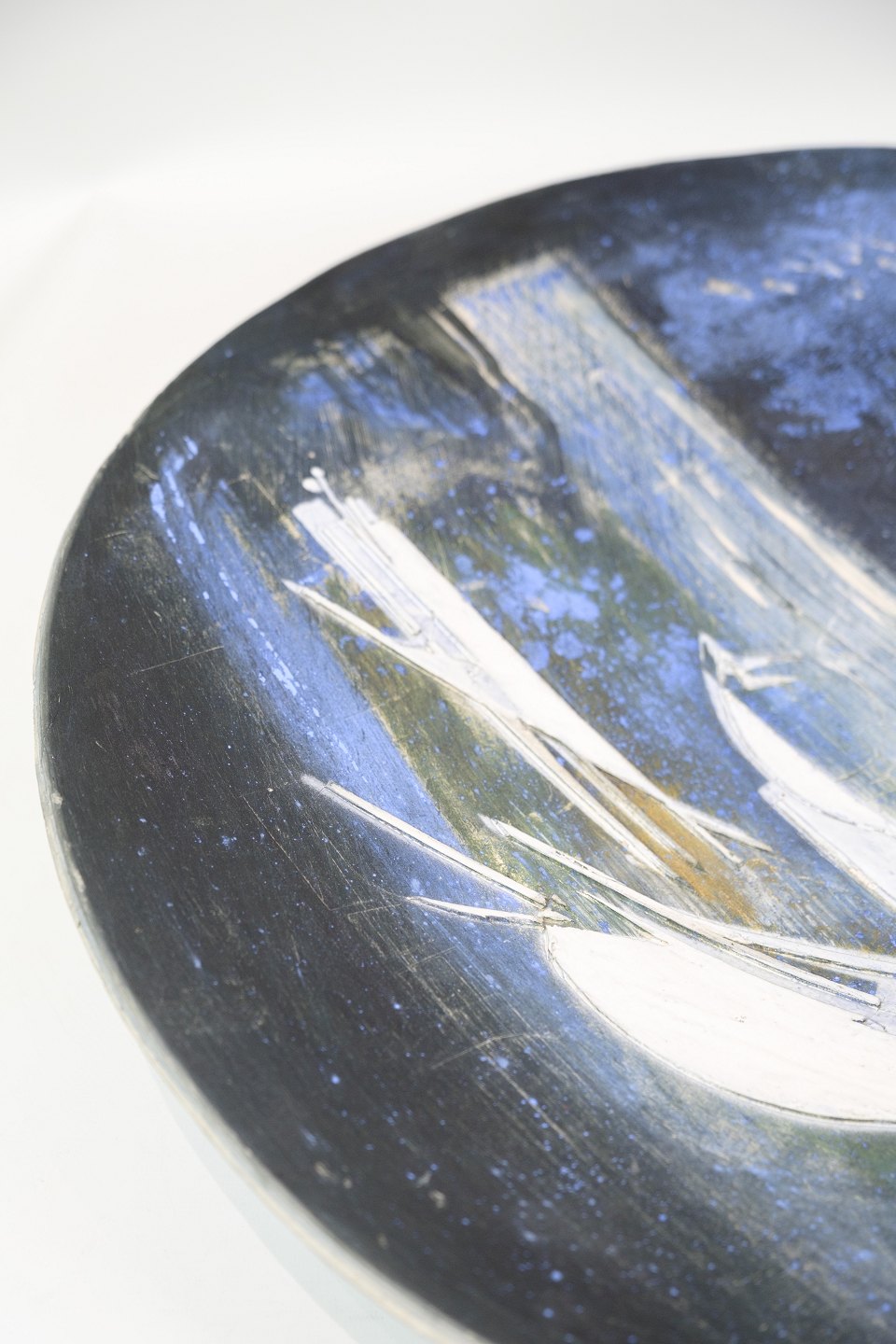Unika Keramik Fad - Motiv Af Både Som Sejler Under En Måneoplyst Himmel - Jeppe Hagedorn-Olsen (1929–2011)
