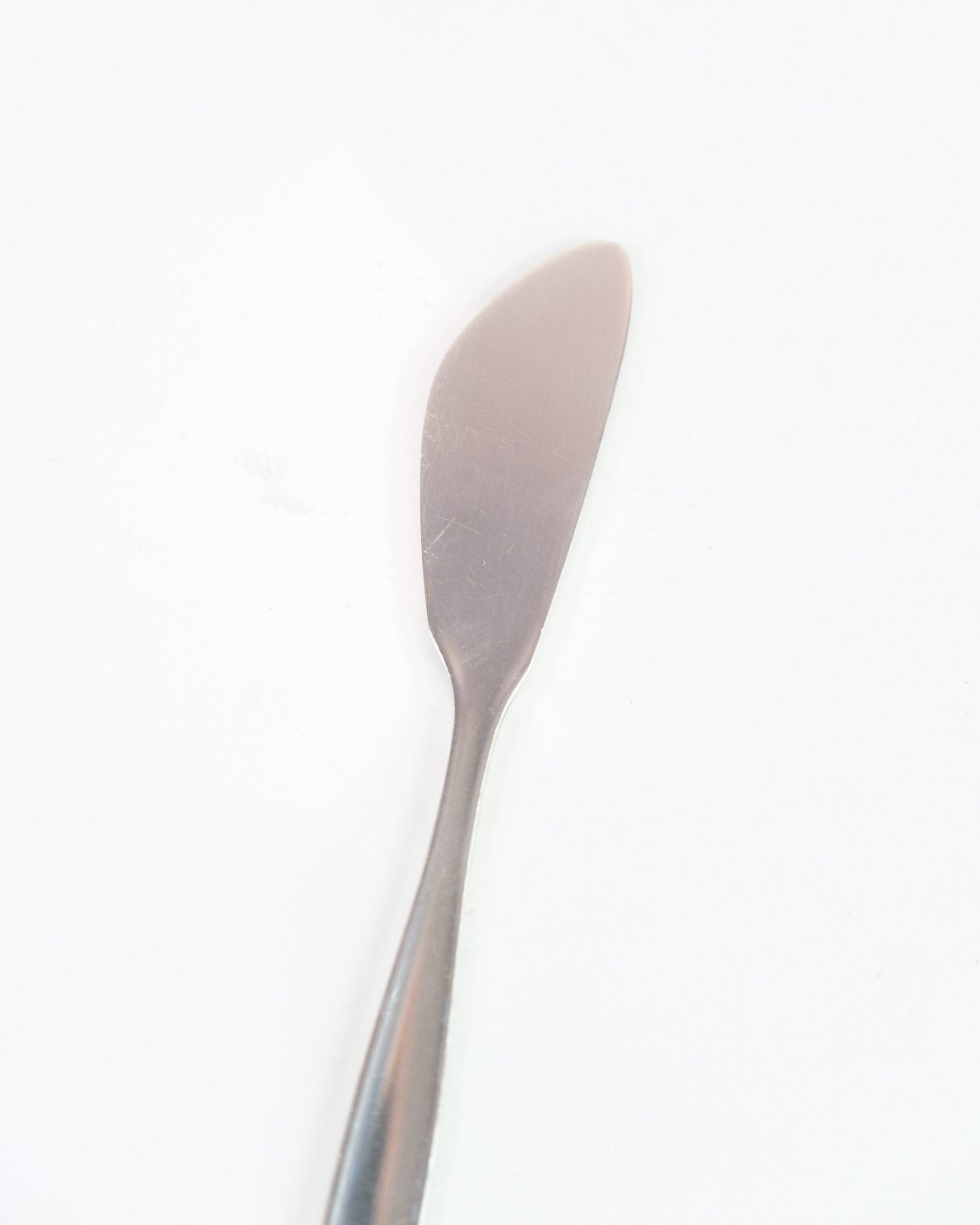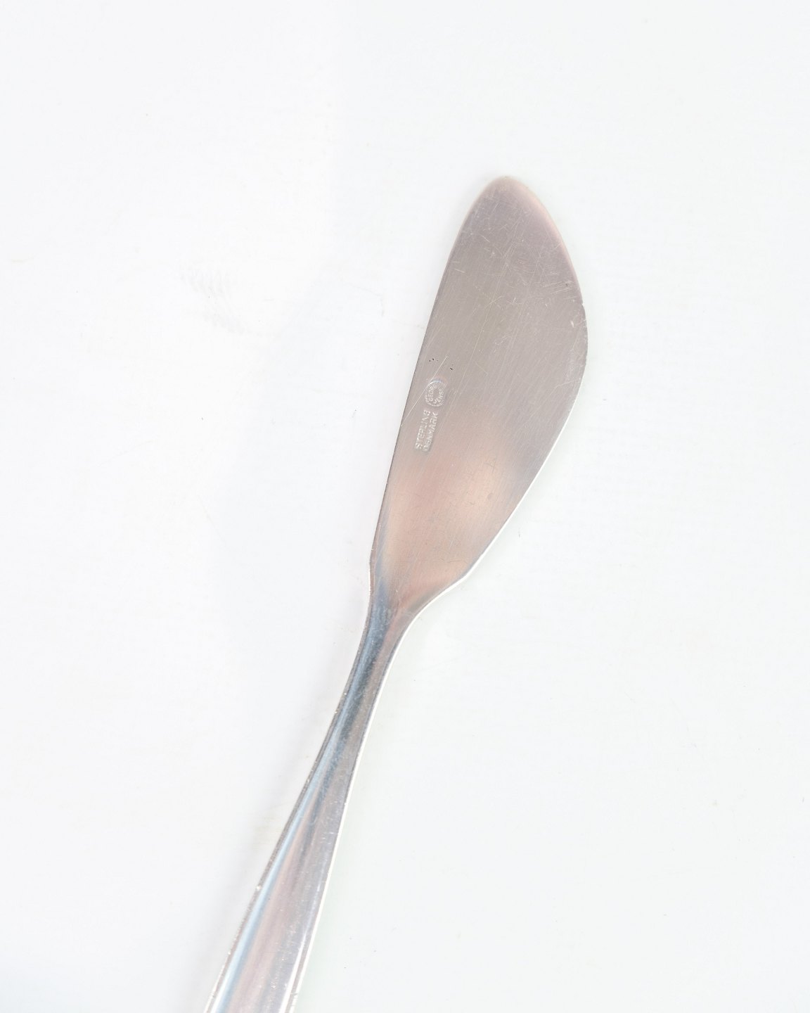 Georg Jensens smørkniv i sterling sølv fra Cypres-serien er designet af Tias Eckhoff i 1953. Cypres-mønsteret er kendt for sin enkle og elegante form, der afspejler skandinavisk designtradition.