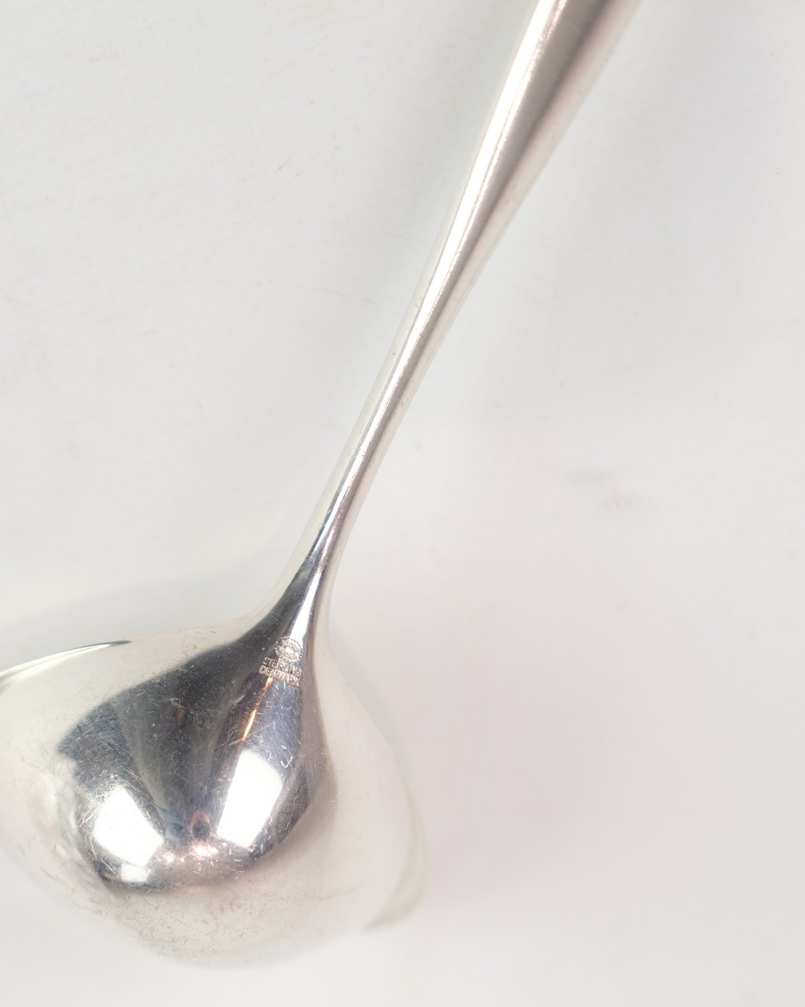 Sauce spoon, model no. 153, is part of the Cypres series, designed by Tias Eckhoff in 1953 and manufactured by Georg Jensen. This sauce spoon is made of sterling silver. The Cypres series is known for its simple design, reflecting Scandinavian minimalism.