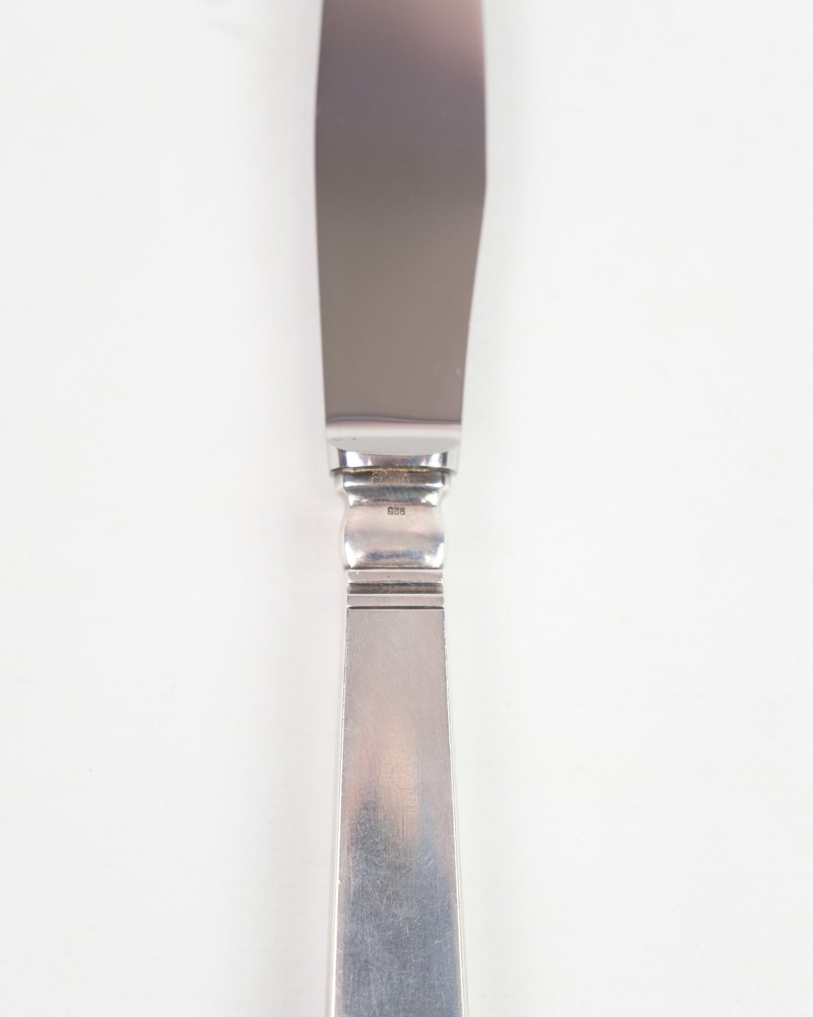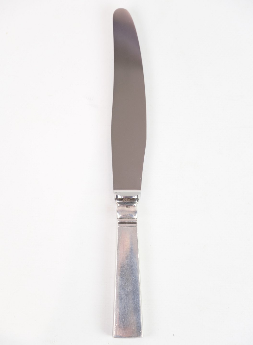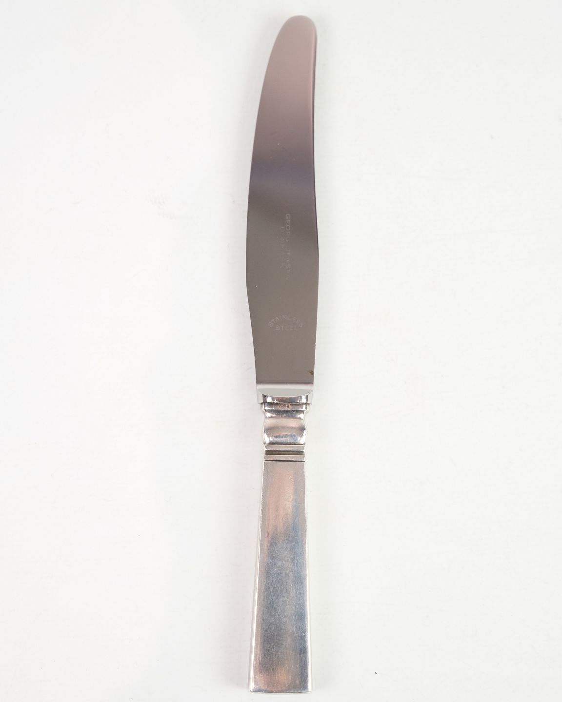 This dinner knife is part of Georg Jensen's "Blok" cutlery series, designed by Ib Just Andersen in 1934. Made of sterling silver, the knife is characterized by its simple and functional design, typical of Scandinavian modernism.