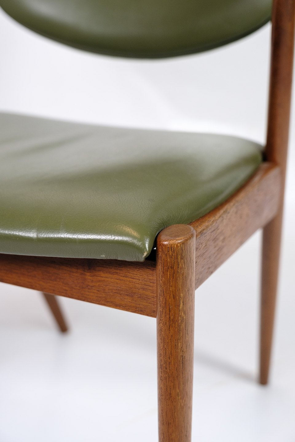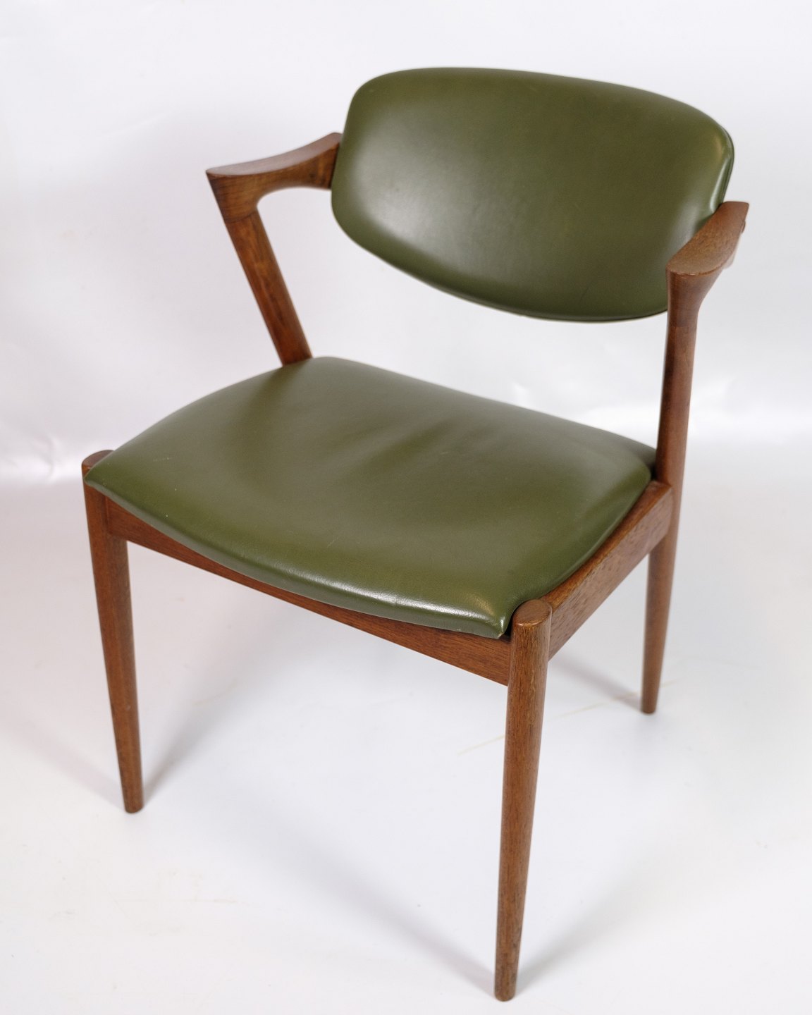 Set of 6 Dining Chairs - Model 42 - Teak - Green Leather - Kai Kristiansen - Schou Andersen - 1960s