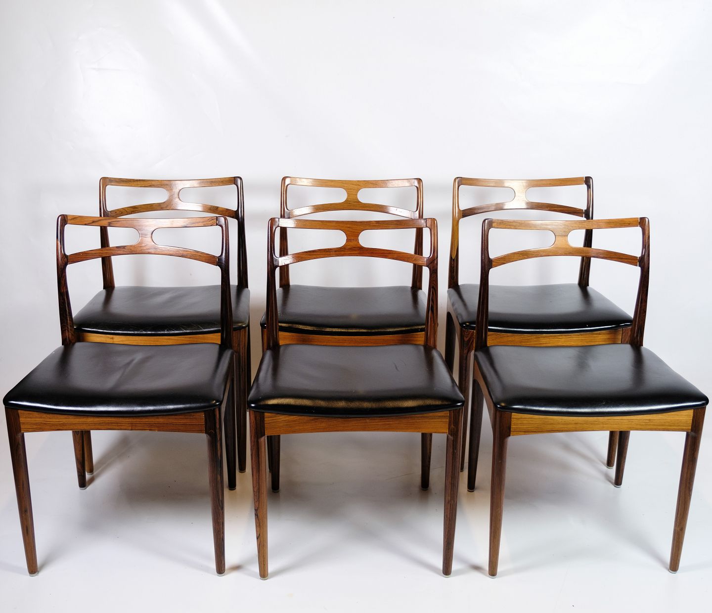 Set of 6 Dining Chairs - Model 94 - Rosewood & Black Leather Seat - Johannes Andersen - Christian Linneberg Furniture Factory - 1960s