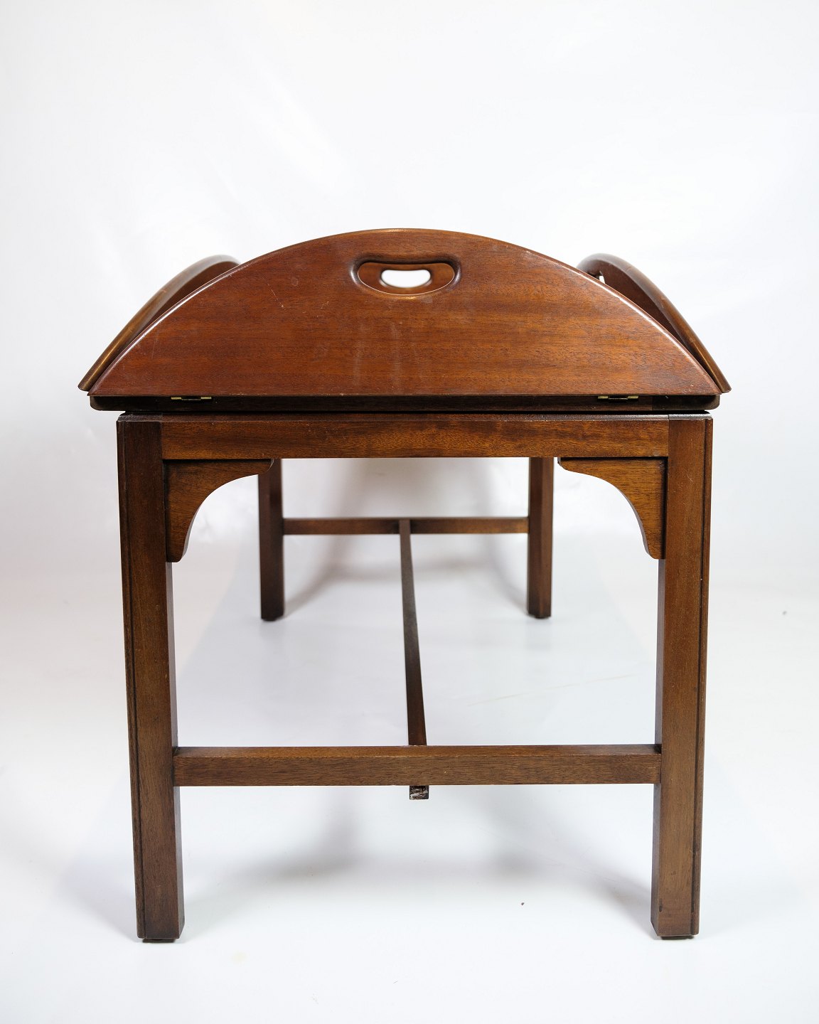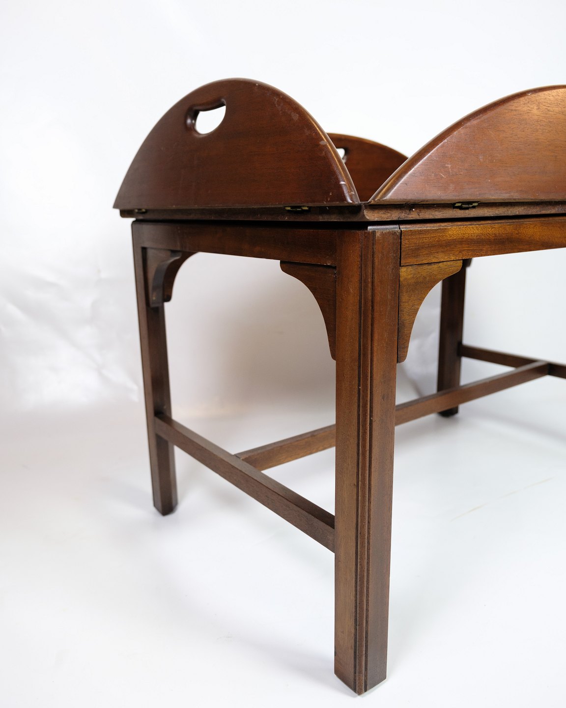 Butler's table made of mahogany from the 1960s. The table is made of solid mahogany, which gives it a warm glow and durability. Butler's tables were popular during this period because of their versatility - they can easily be used as a serving table or side table and often have a removable tray or handle, making them easy to move around.