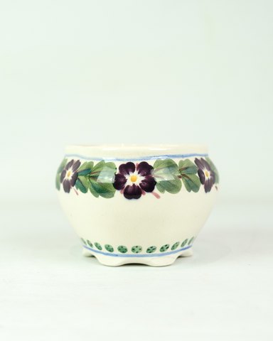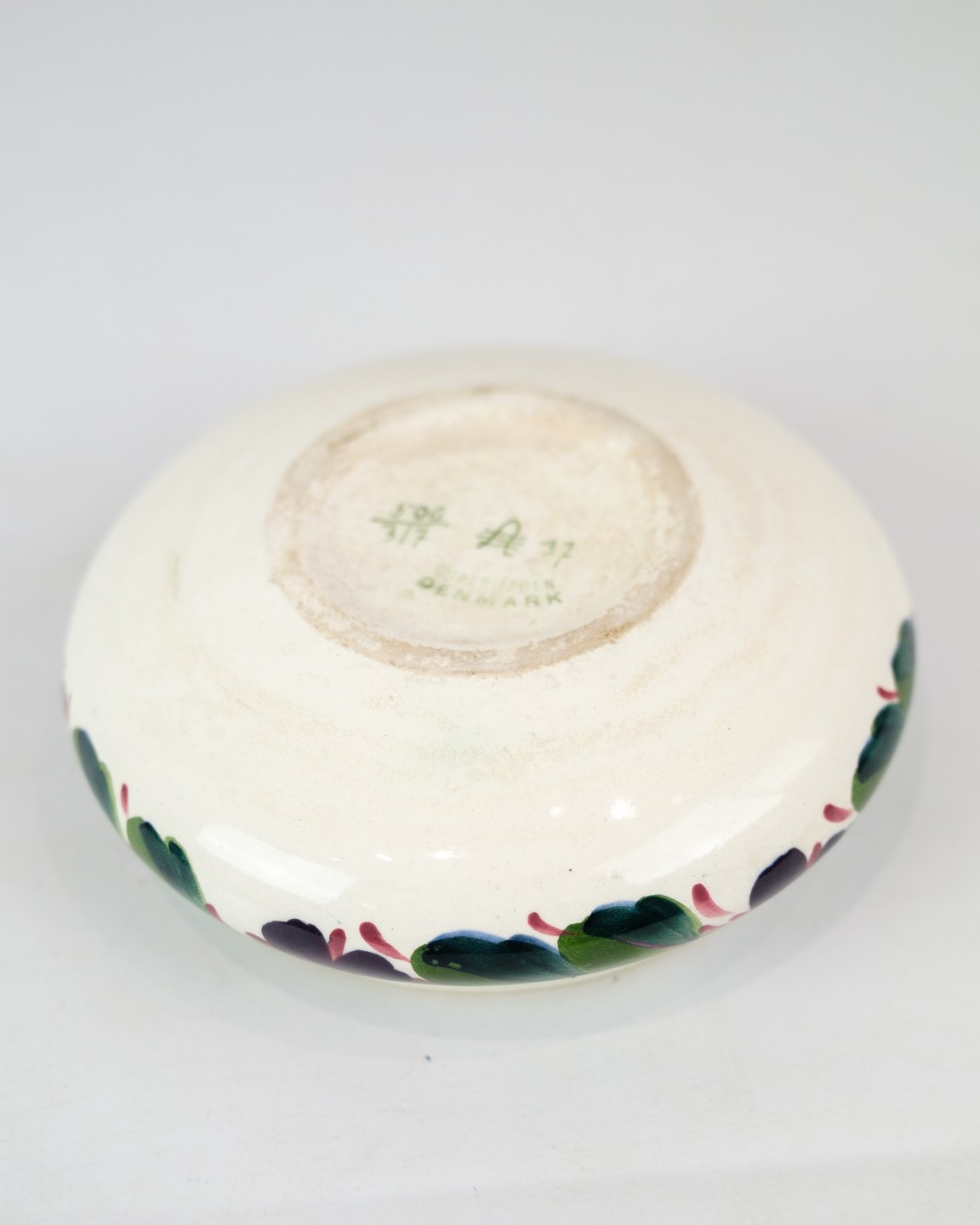 Denne fingerskål, model 506/317, er fremstillet i fajance og designet af den anerkendte danske kunstner Harald Slott-Møller. Skålen kombinerer kunstnerisk finesse med funktionelt design og bærer præg af Aluminia-fabrikkens karakteristiske håndværk og dekorative stil.