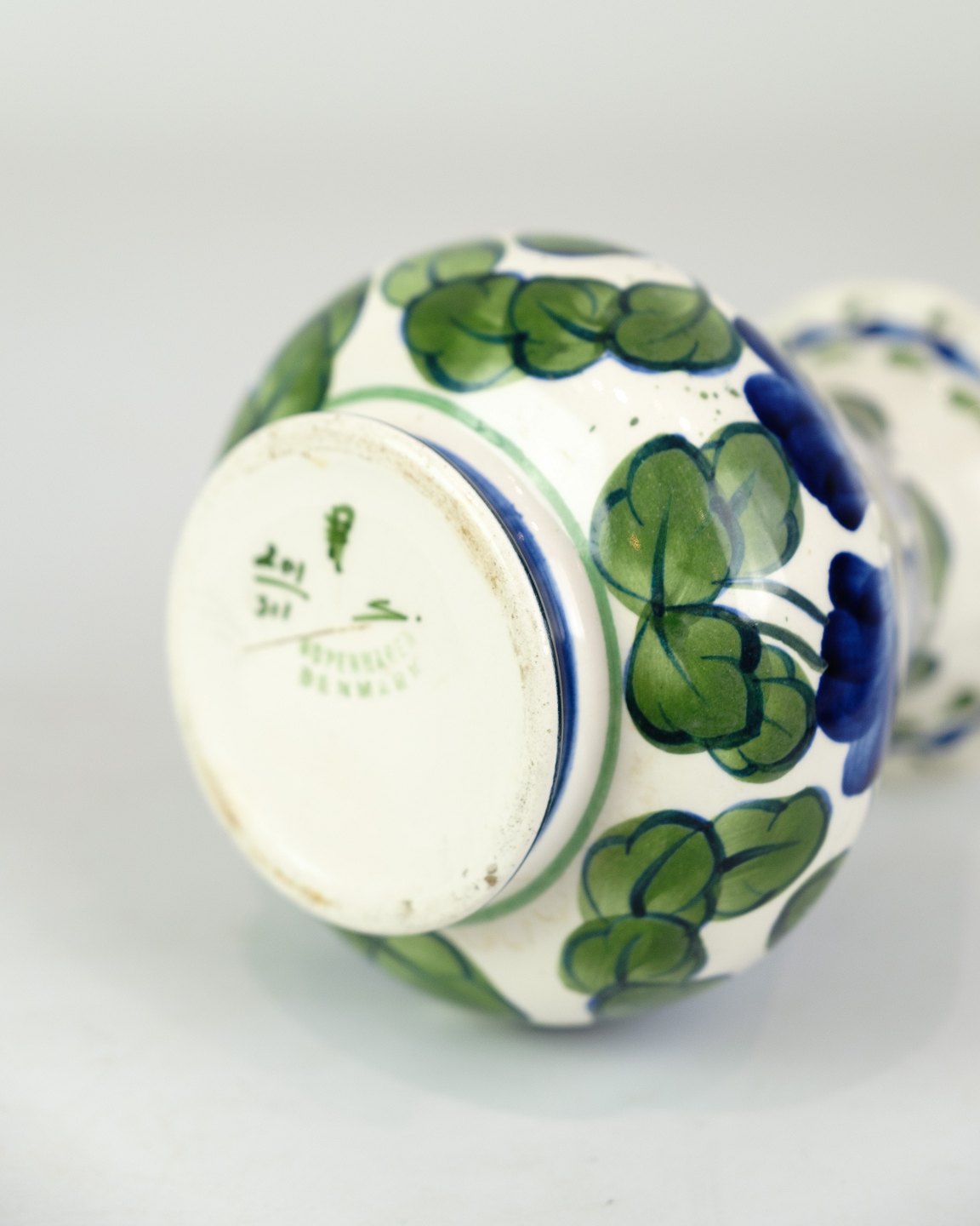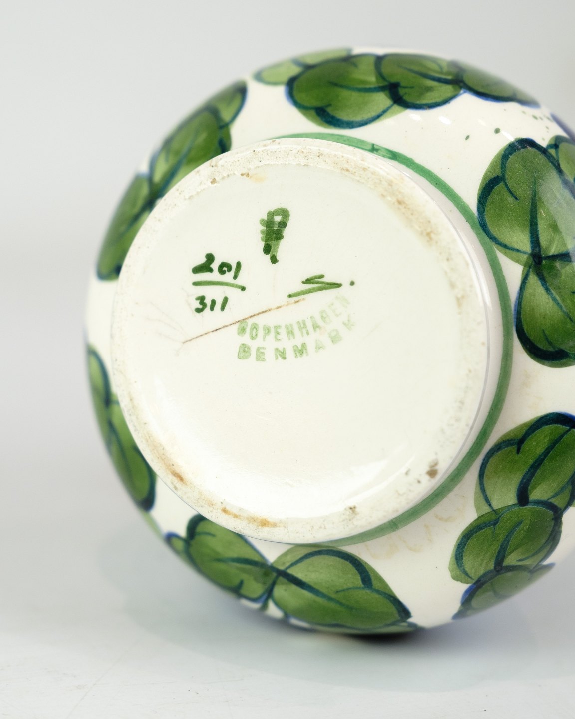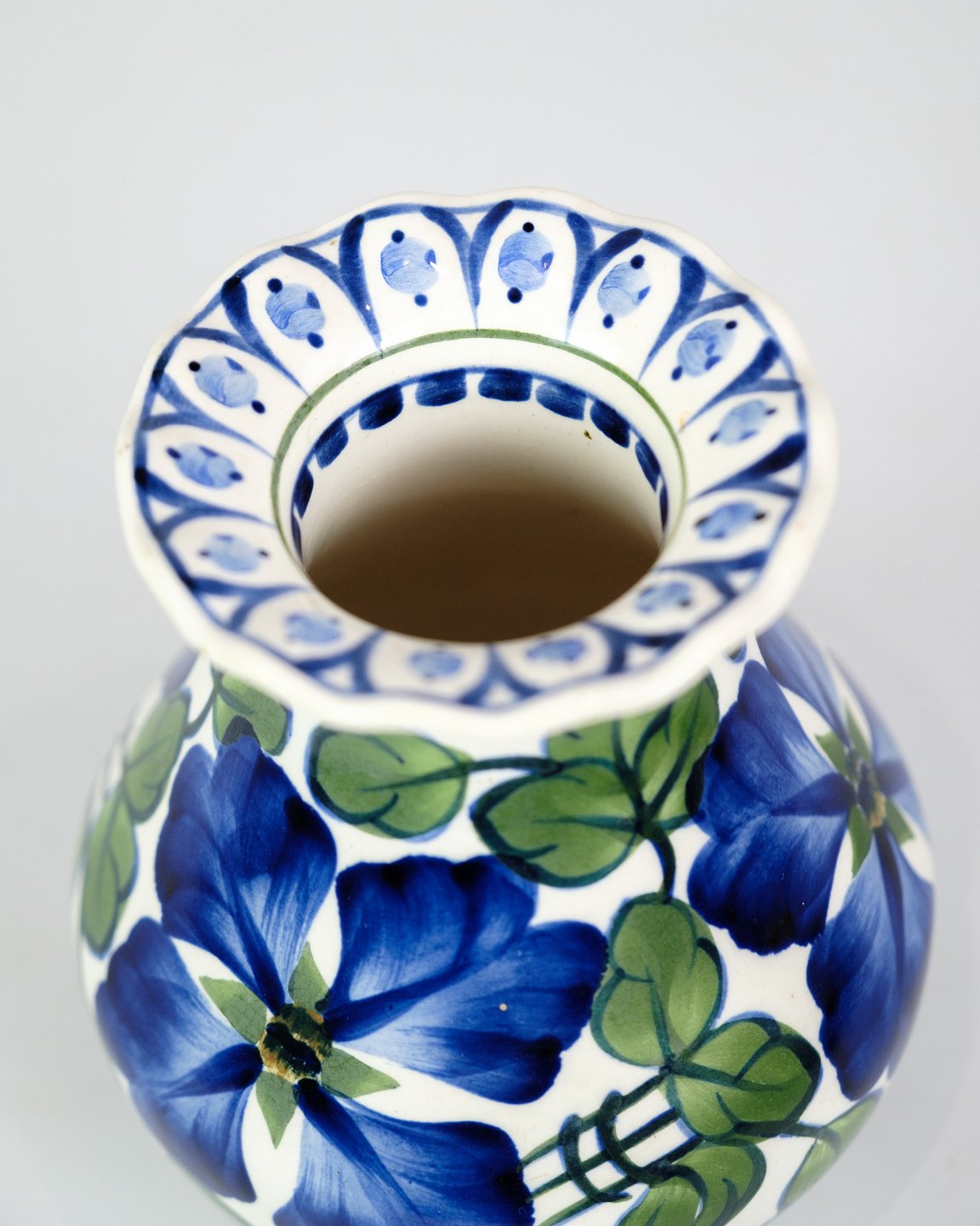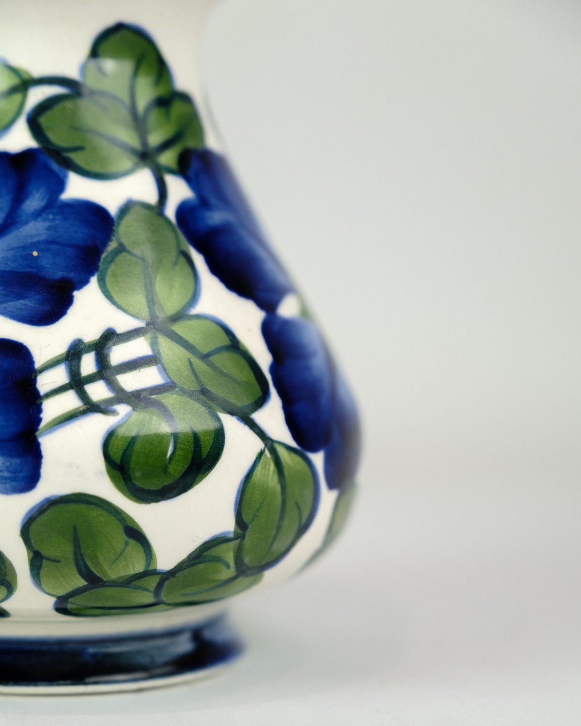 Denne vase, model 201/311, er fremstillet i fajance og dekoreret med et elegant, håndmalet klematismotiv. De fine detaljer og den kunstneriske udsmykning gør vasen til en unik og tidløs dekoration, der passer ind i både klassiske og moderne omgivelser.