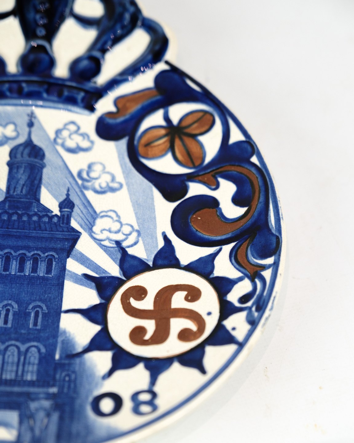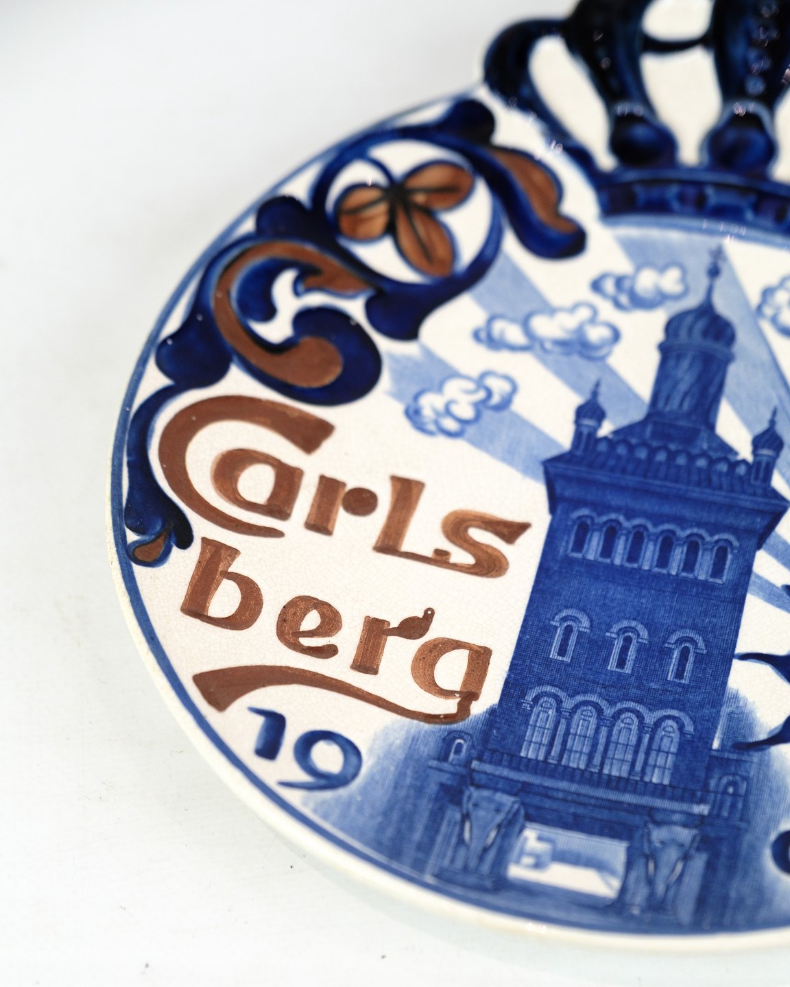 SolgtDenne bryggeriplatte fra 1908 er fremstillet i fajance af Aluminia og prydet med en smuk dekoration af den ikoniske Elefantporten ved Carlsberg Bryggerierne. Motivet hylder Carlsbergs stolte bryggeritraditioner og giver platten en historisk og kunstnerisk værdi.
