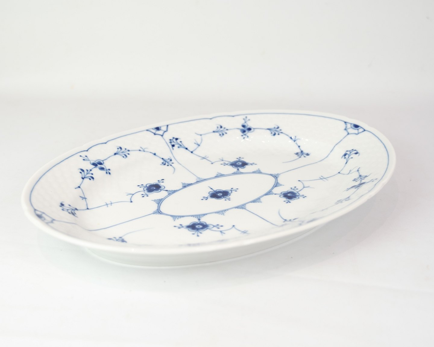 Ovalt Fad nr. 16 fra Bing & Grøndahl. Fremstillet af porcelæn med klassisk musselmalet design i håndmalet blå dekoration.
