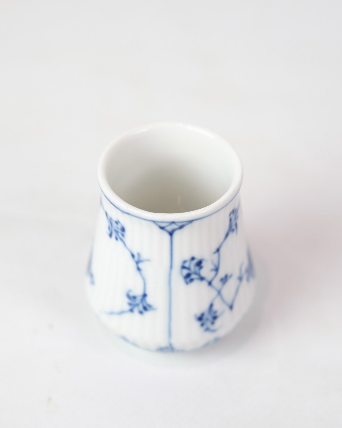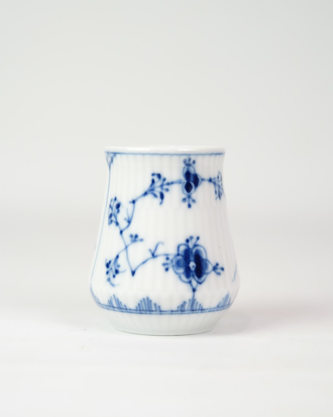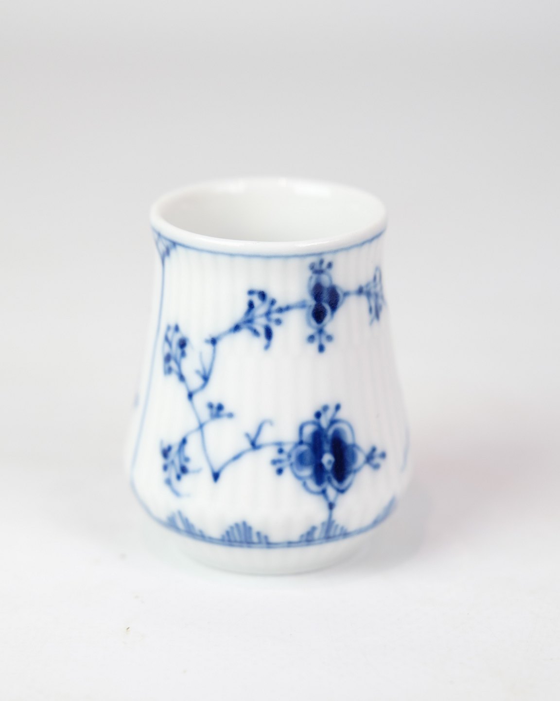 Set of 2 mustard jars without lids no. 52C from Bing & Grondahl. Made of porcelain with classic blue fluted design in hand-painted blue decoration.