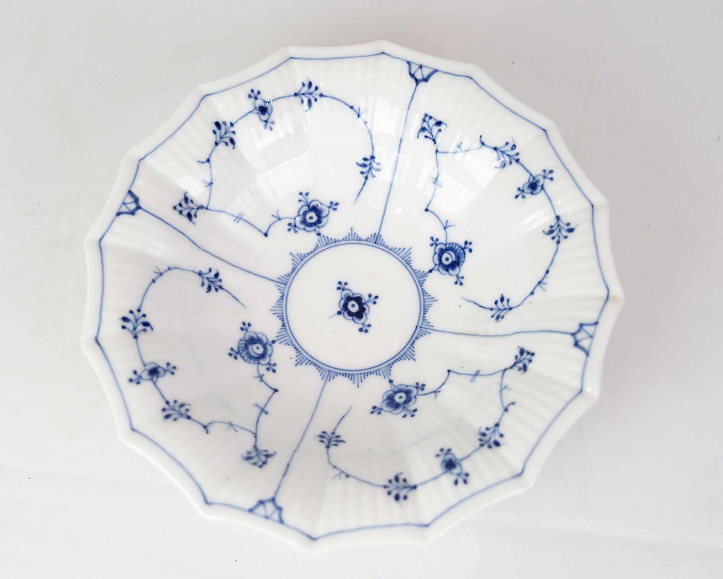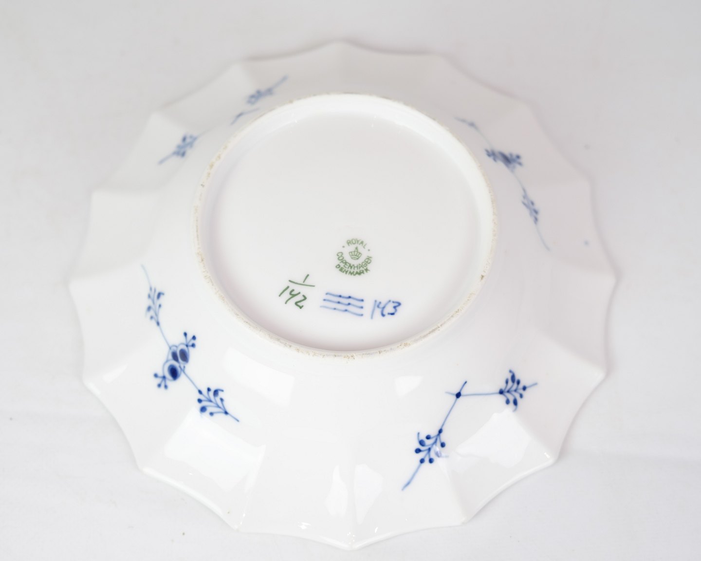 RC Bowl marked 1/142 from Royal Copenhagen. The bowl is made of porcelain in a blue fluted design. Hand painted in blue decoration.