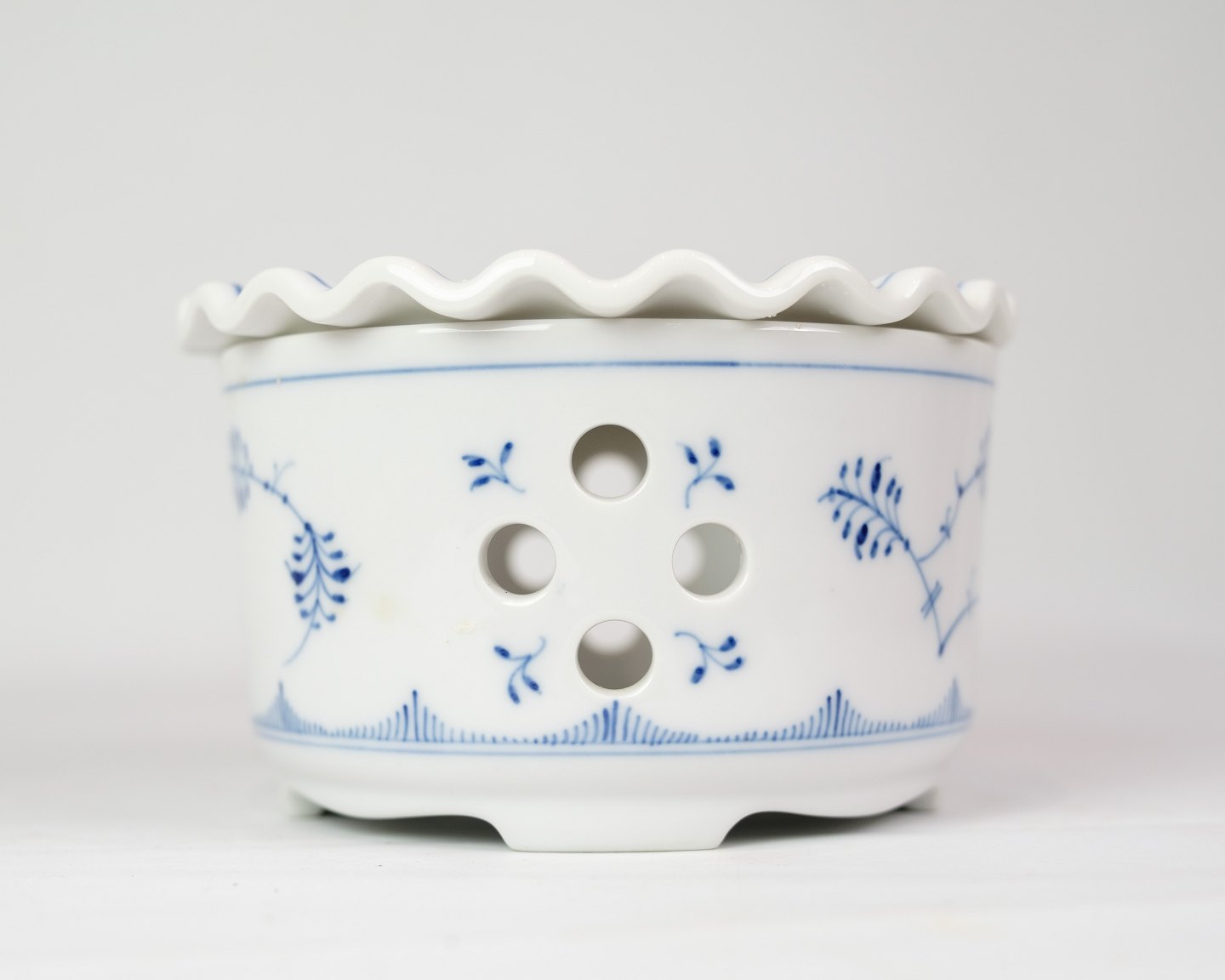 SolgtFyrfads varmer af Royal Copenhagen i mønstret Musselmalet riflet model nr. 1 /9787. fyrfadsvarmeren bruges til at holde enten te eller kaffekanden varm. Står i meget flot håndmalet stand.