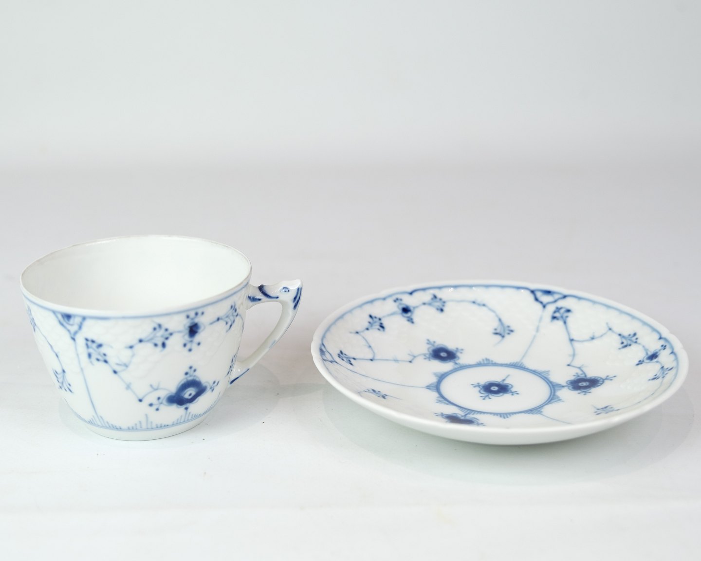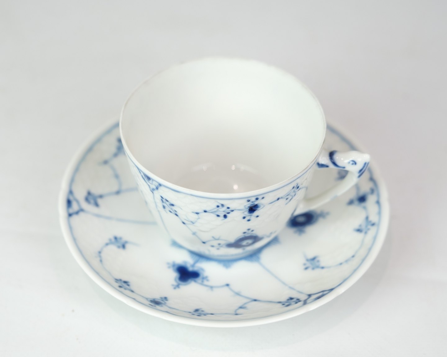 Kop med underkop i mønstret blåmalet / musselmalet fremstillet af B&G med underkop nr. 108 og Kop nr. 202.