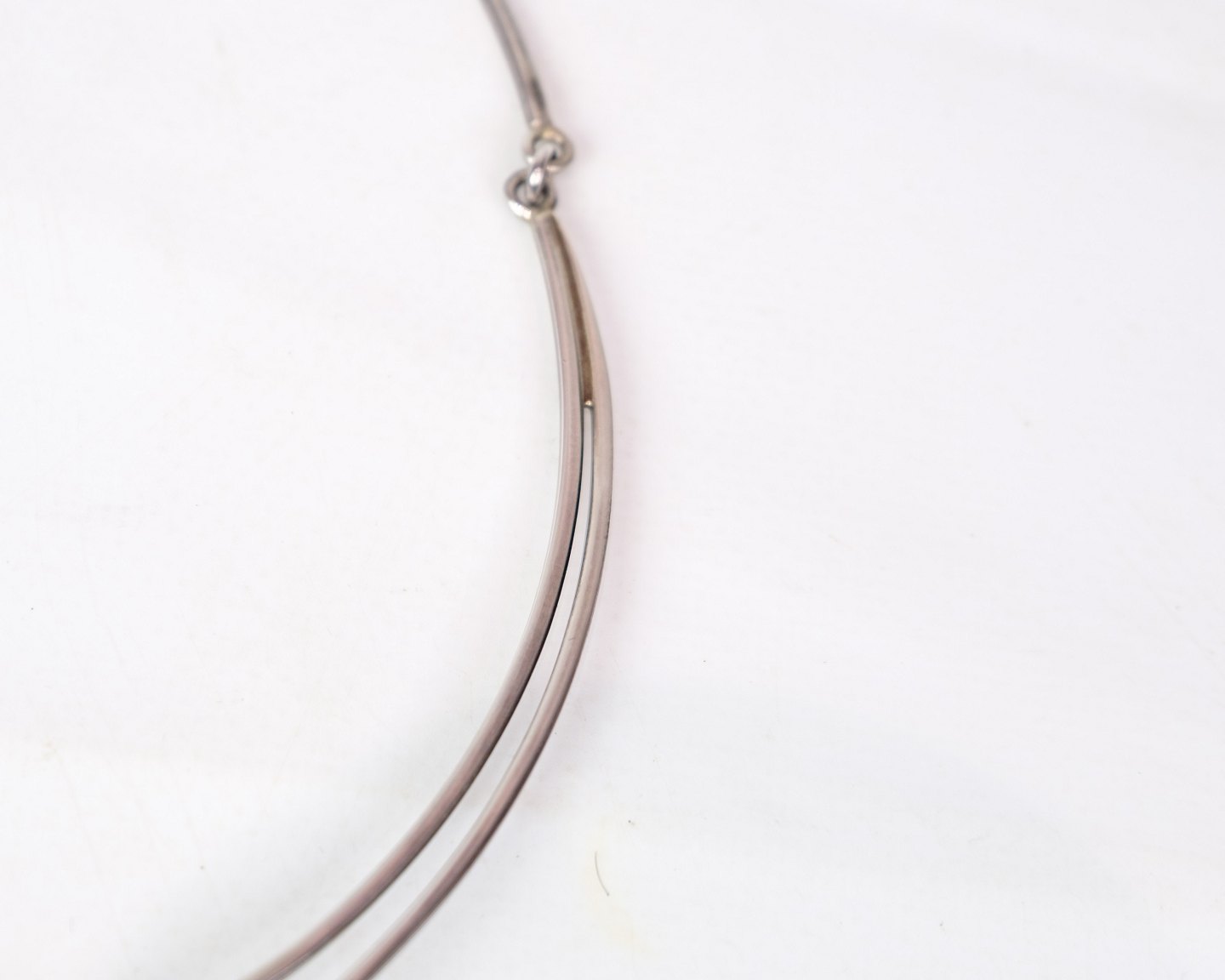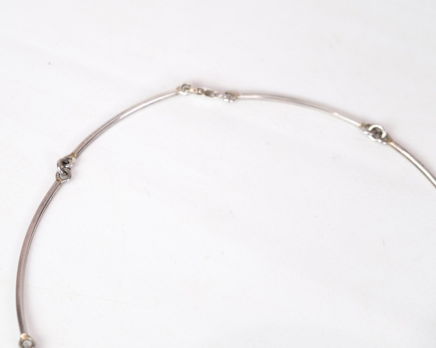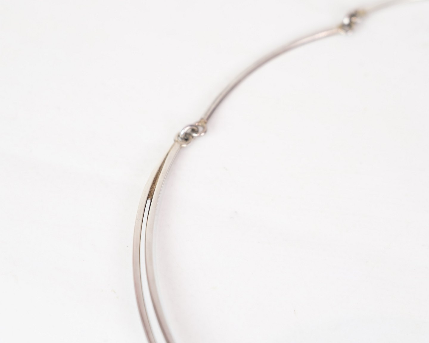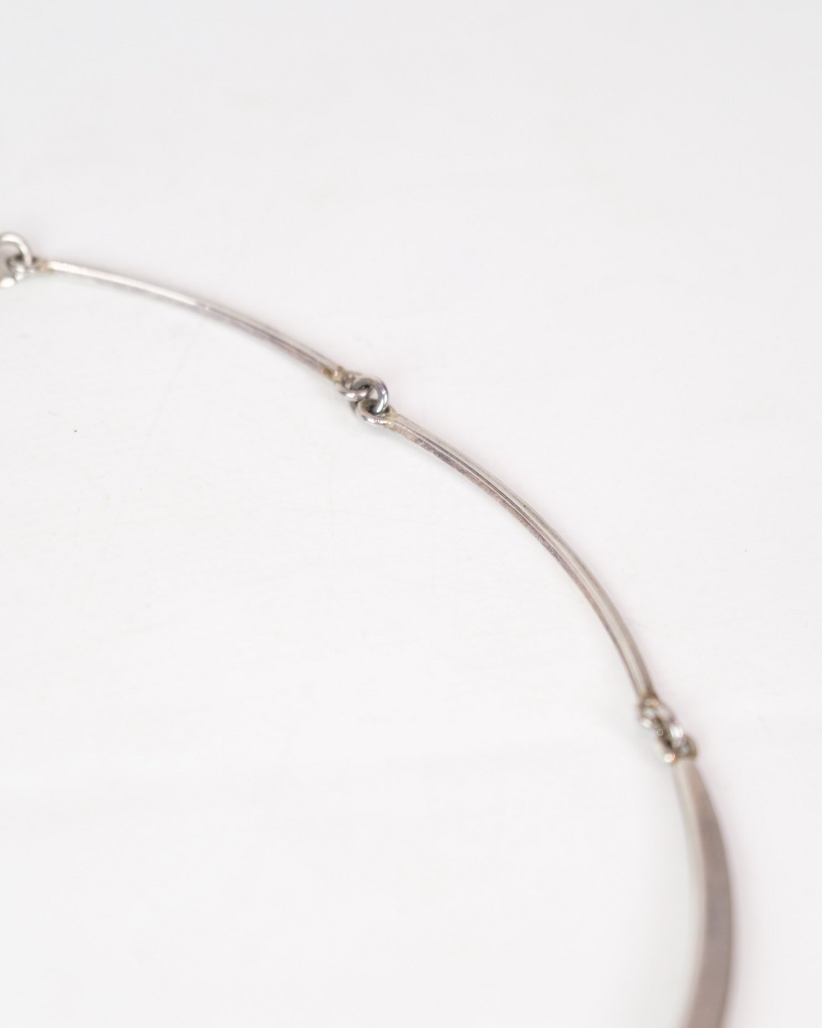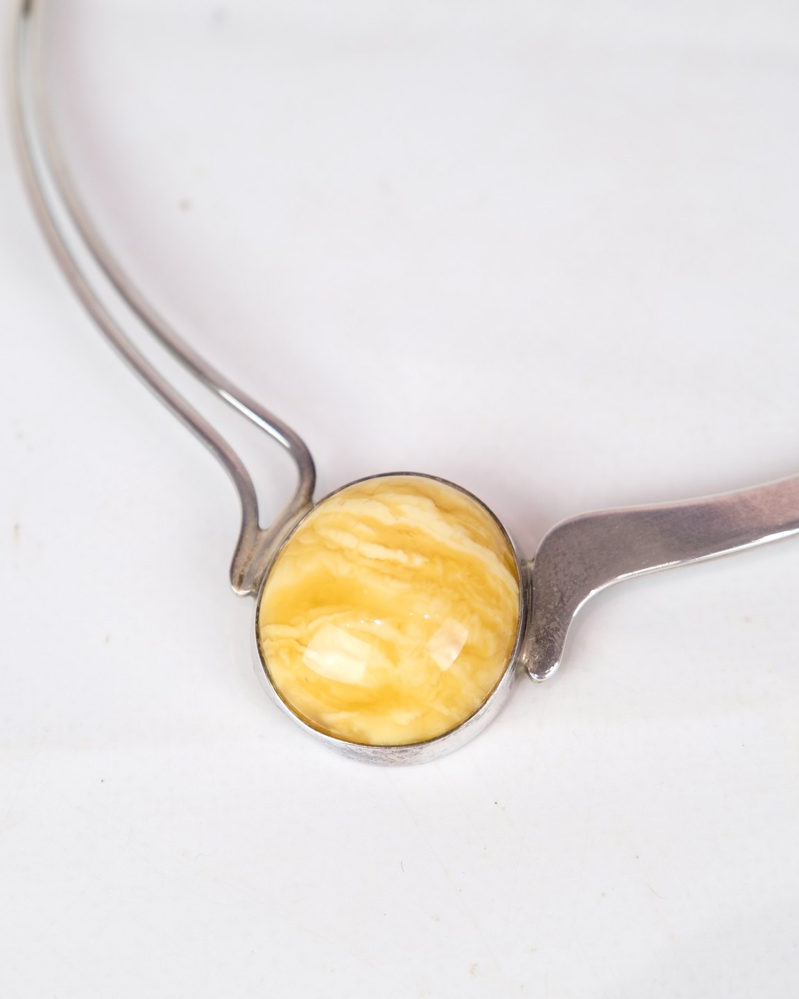 SolgtHalscollier fra 1950’erne i sterling sølv 925 med stor, gul ravsten som midtpunkt.