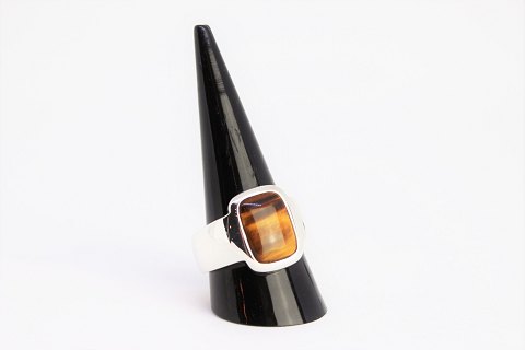 SolgtHalscollier fra 1950’erne i sterling sølv 925 med stor, gul ravsten som midtpunkt.