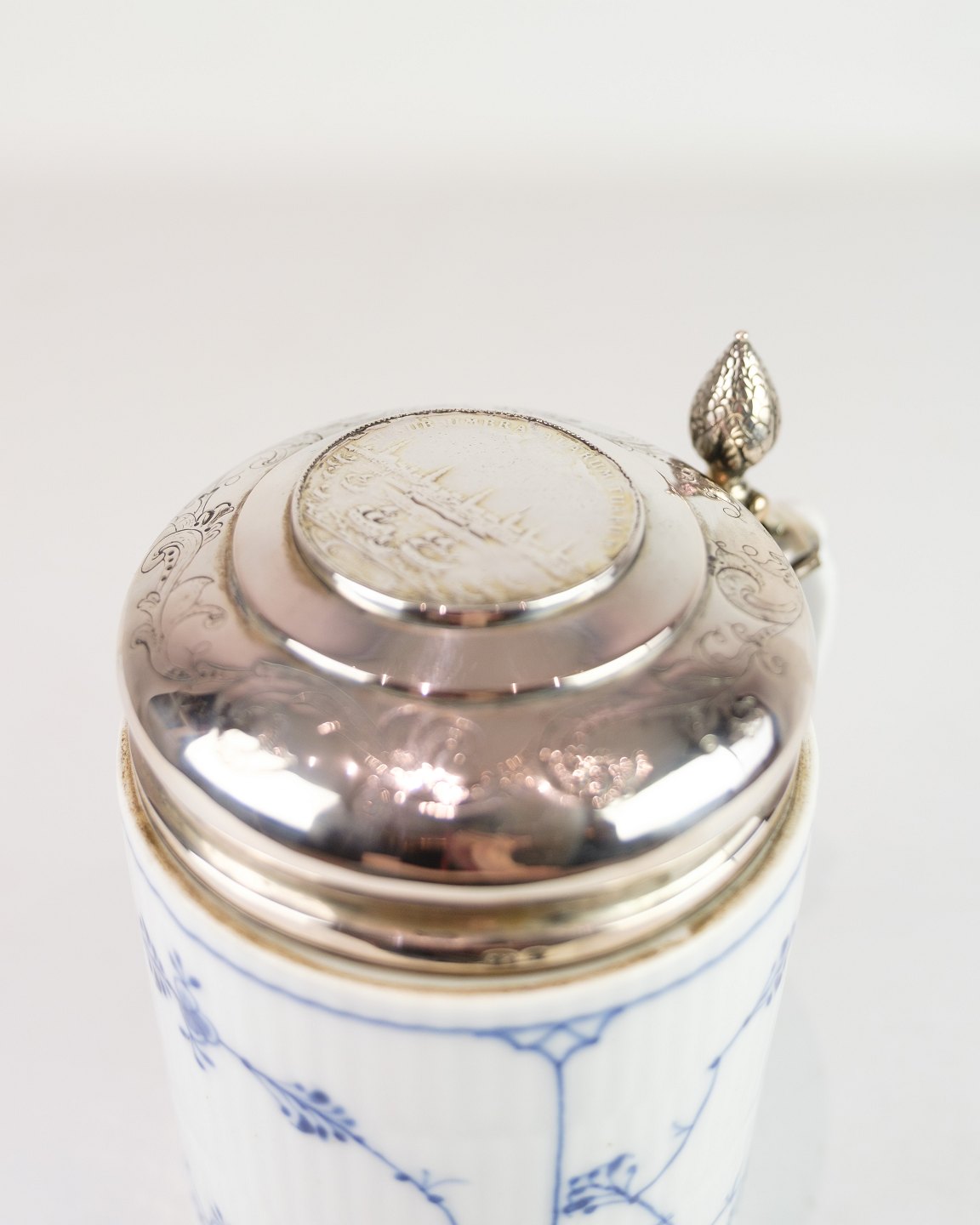 Lidded Mug With Baroque Lid - Model 1/2023 - Porcelain & Silver - Fluted Blue Fluted - Royal Copenhagen