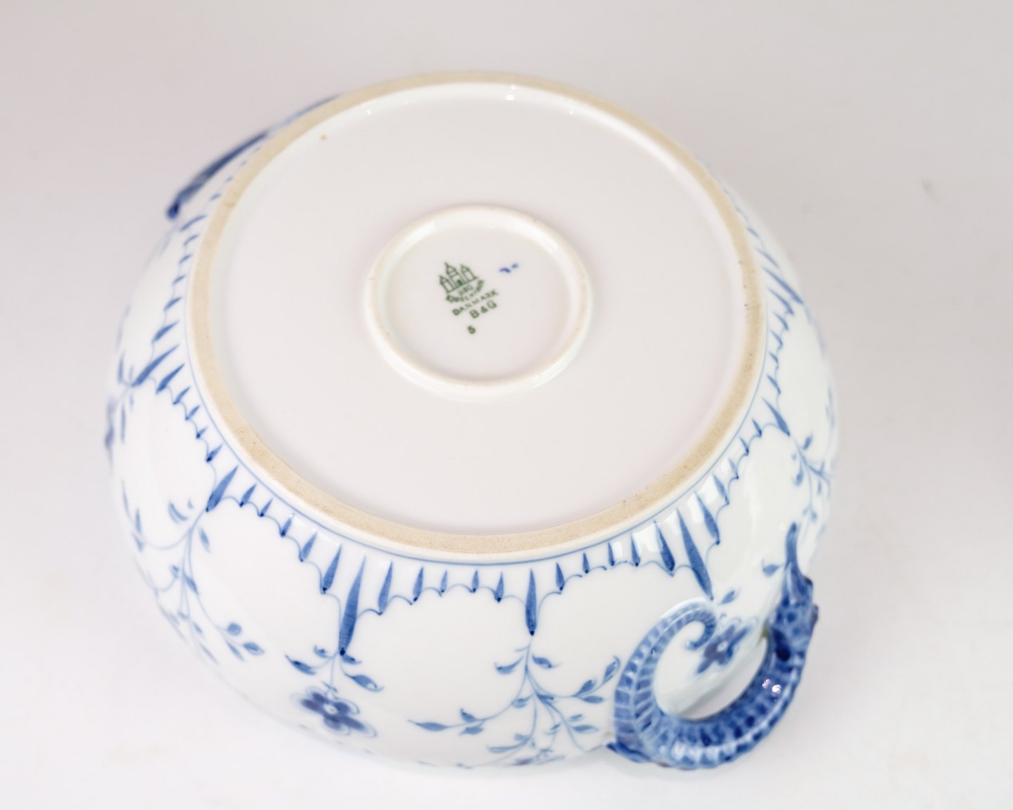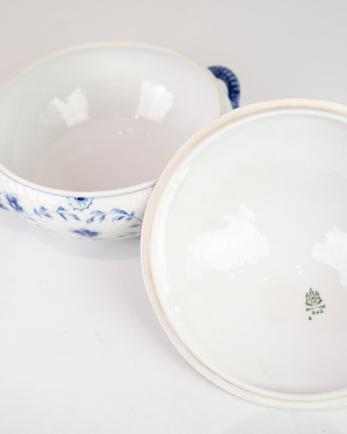 Terrin nr. 5 fra Bing & Grøndahl i klassisk musselmalet porcelæn. Dekoreret med håndmalet sommerfugl mønster og fine detaljer.