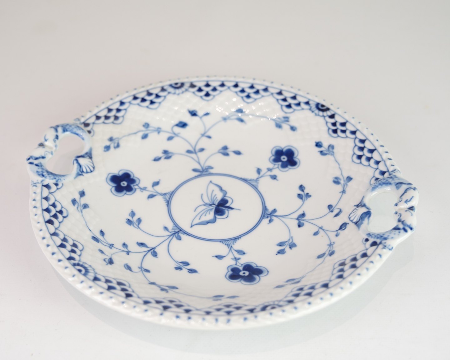 Round cake plate with handle, model no. 304, from Bing & Grondahl. Decorated with Butterfly motif. Porcelain with printed stamp under the base. Suitable for serving or collecting.