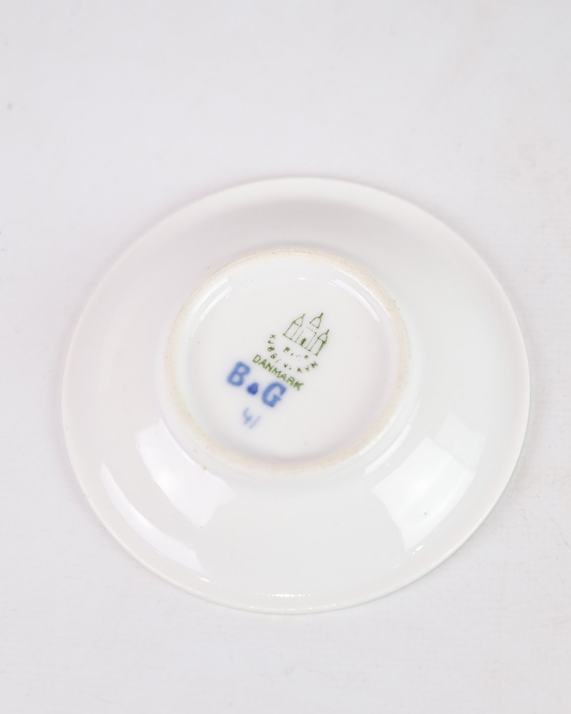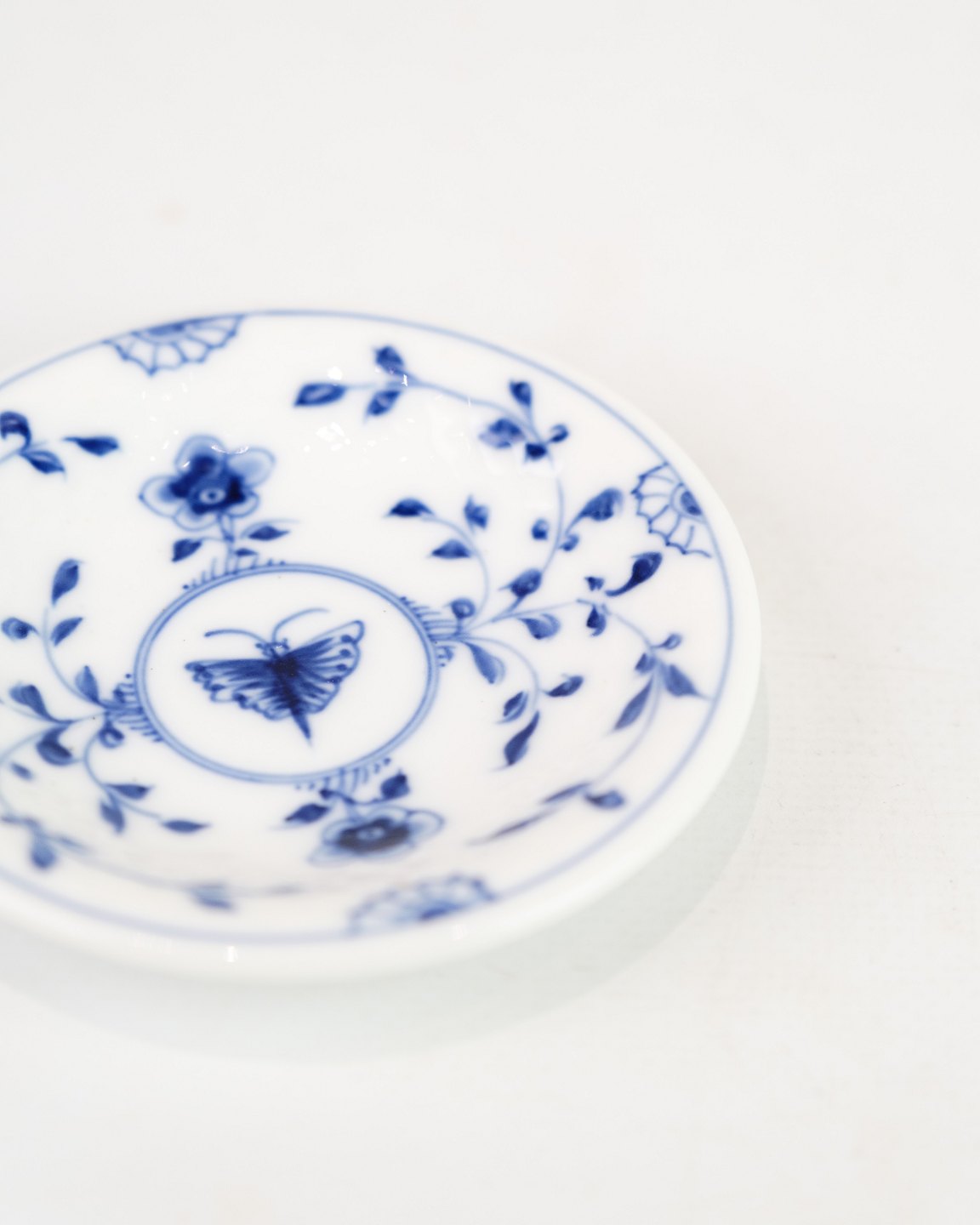 Lille smørekop/asiet, nr. 41, fra Bing & Grøndahl. Dekoreret med håndmalet sommerfuglmotiv. Porcelæn med stempel under bunden. Velegnet til servering eller som samlerobjekt.