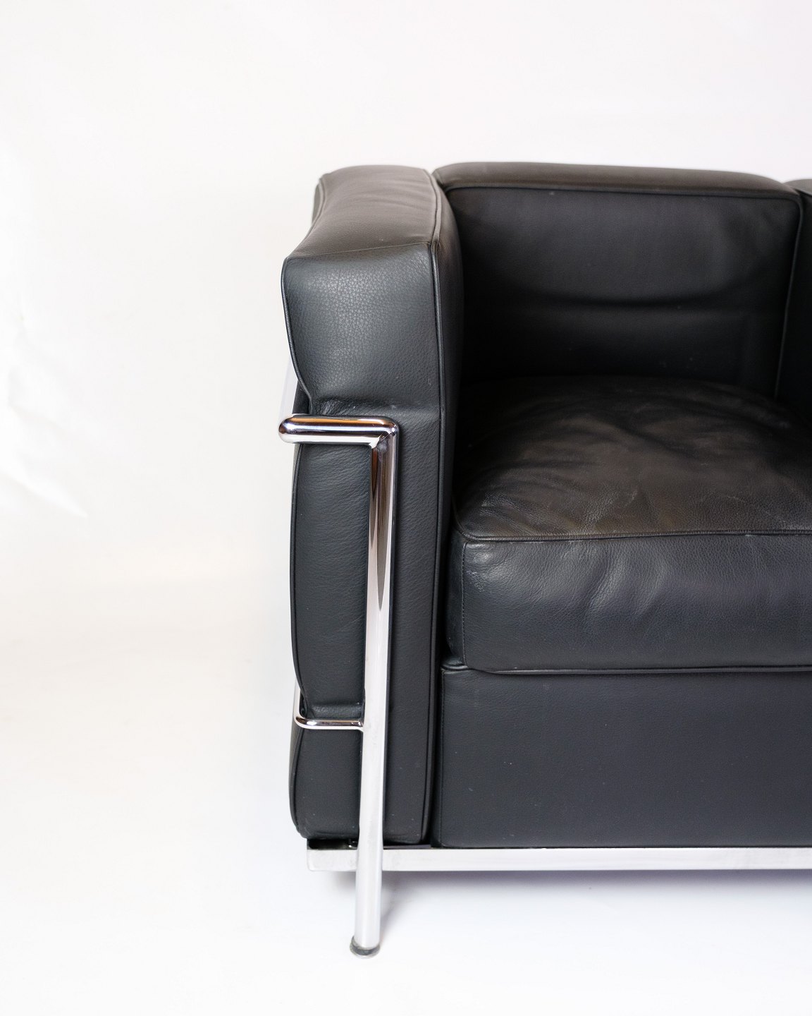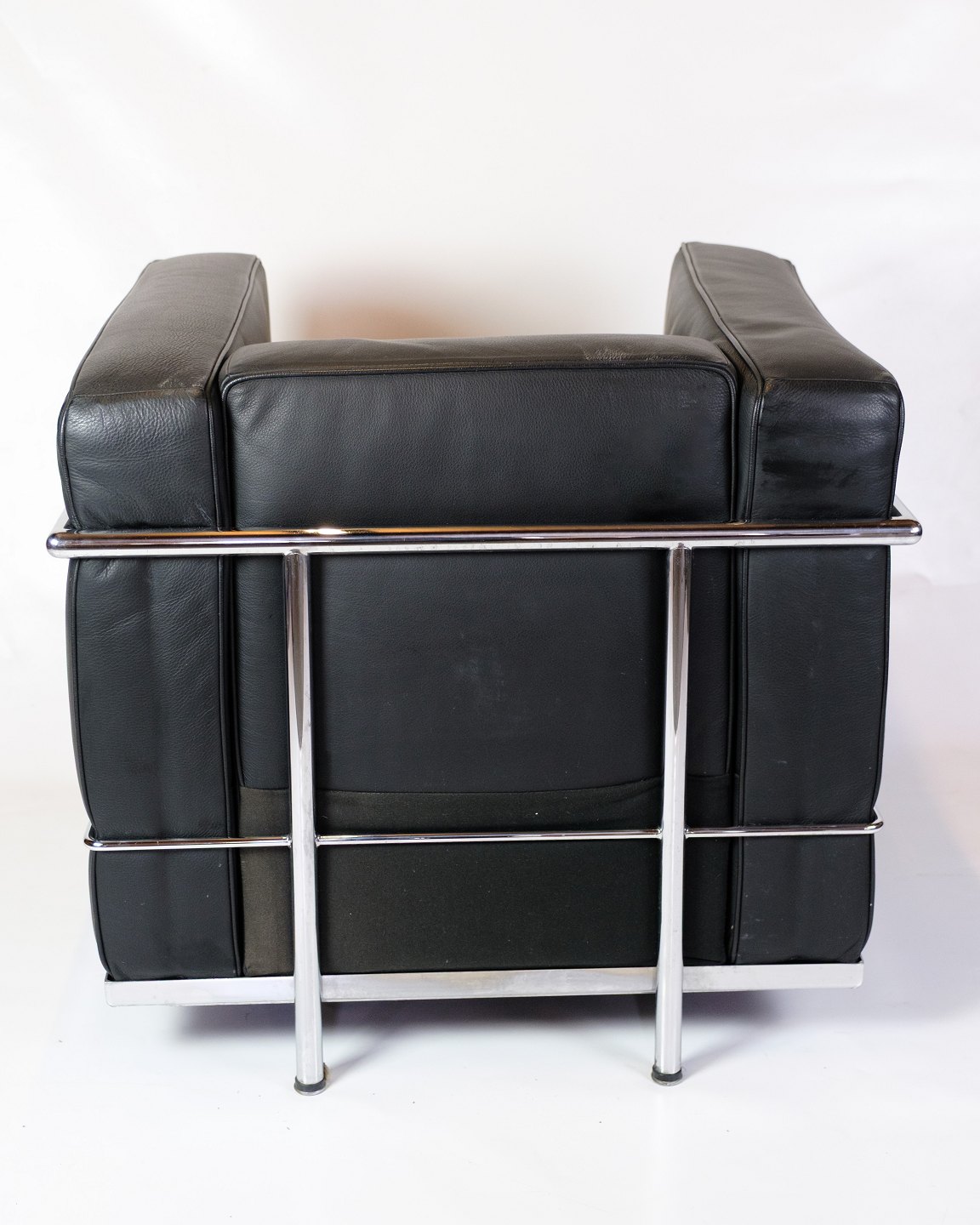 Le Corbusier Lænestol - Model LC2 - Ramme Af Forkromet Stålrør - Sort Læder - Le Corbusier - Cassina