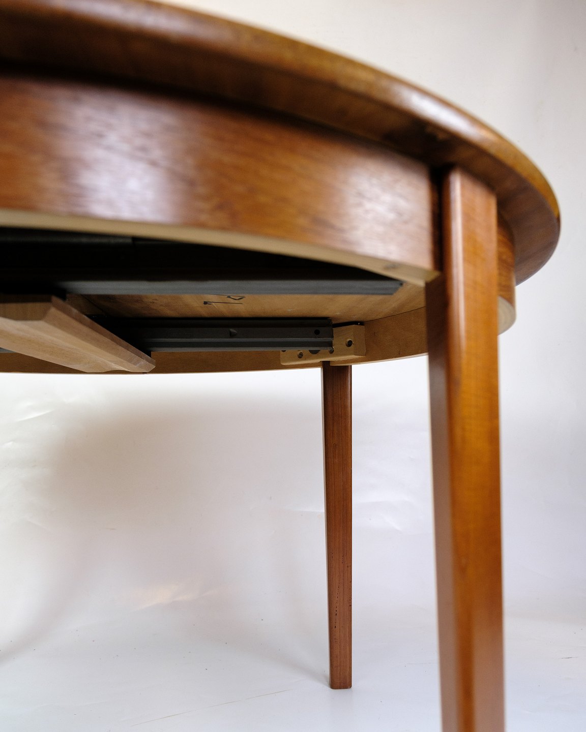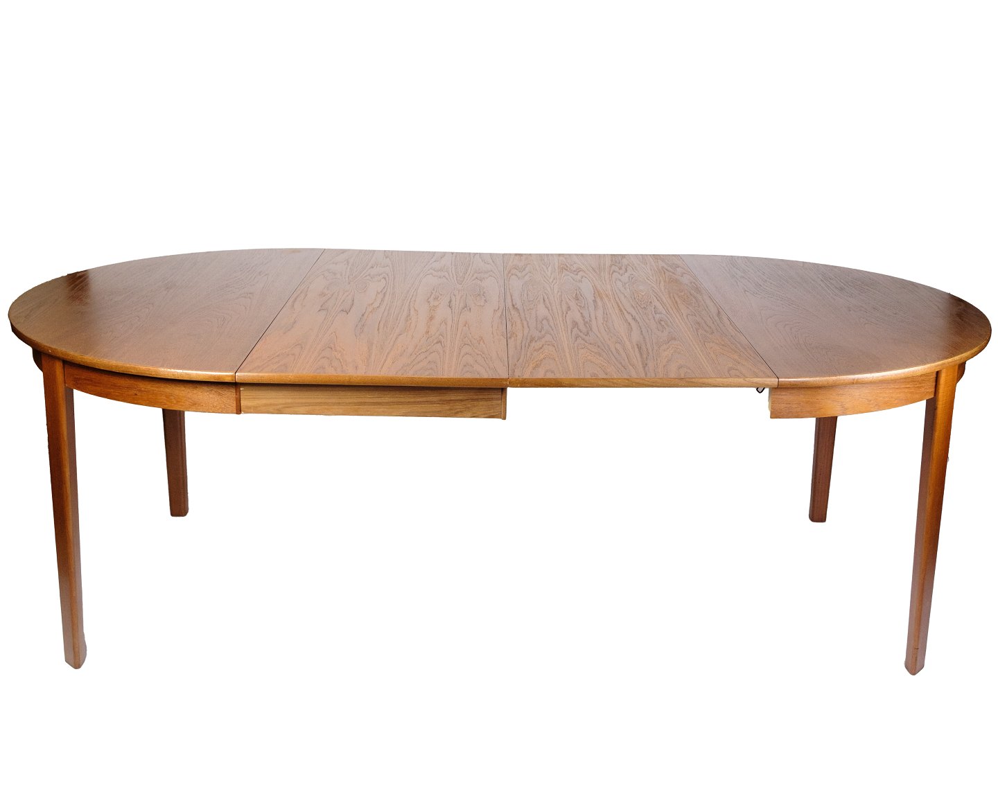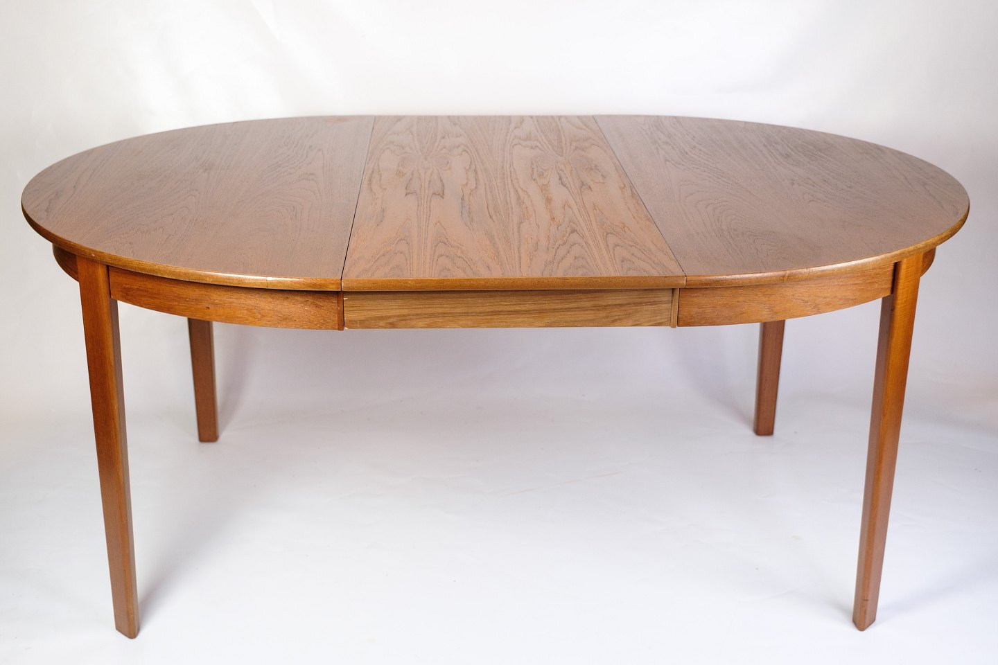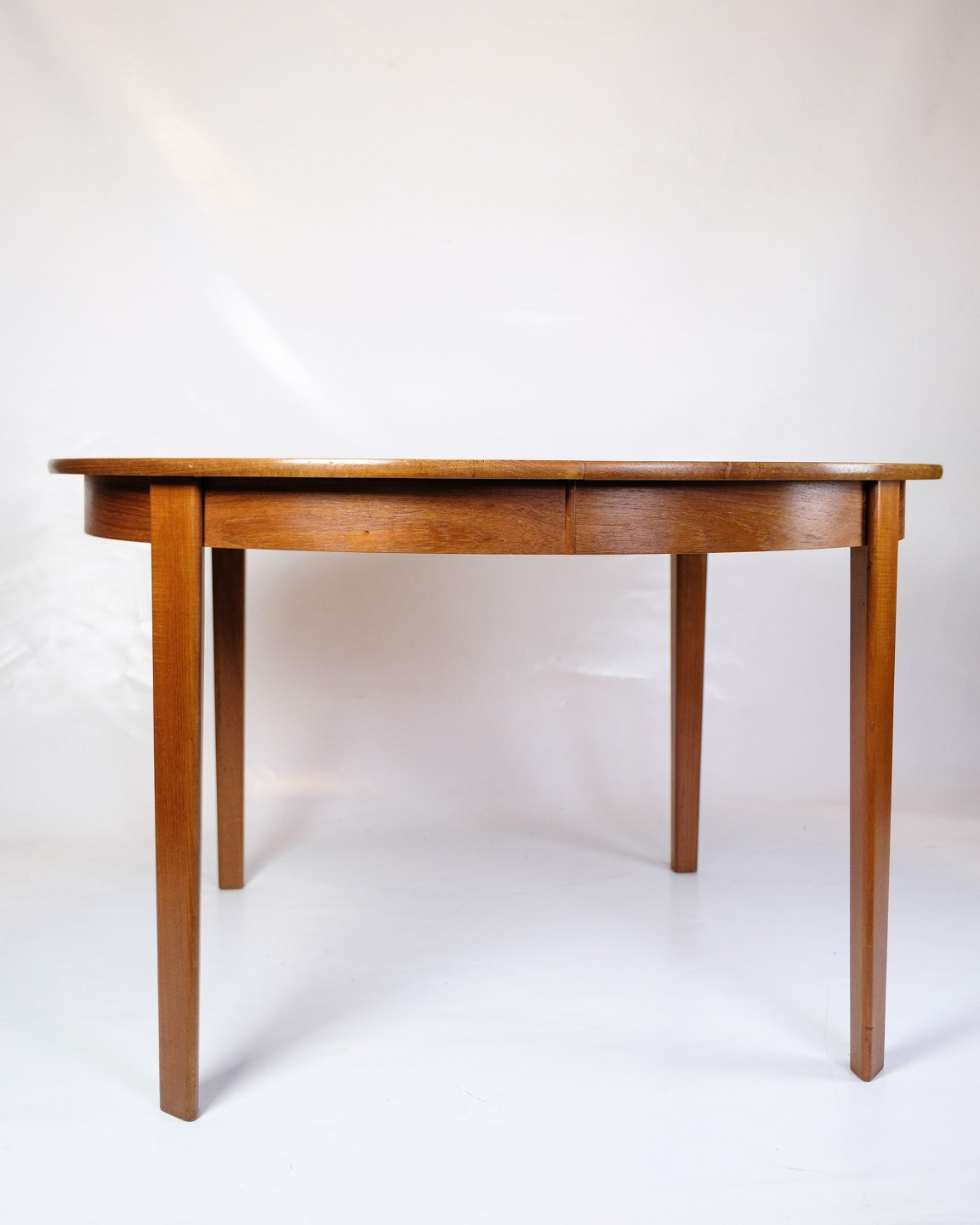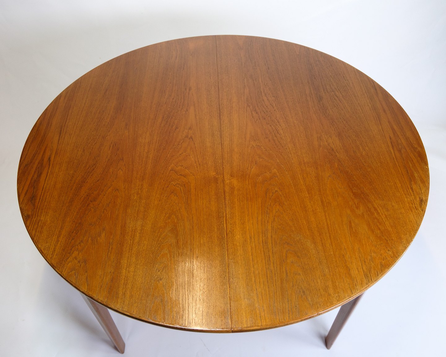 SoldRound teak dining table with four extension leaves, made in Denmark in the 1960s. The table can be extended with up to four leaves, which is rare and provides great flexibility.