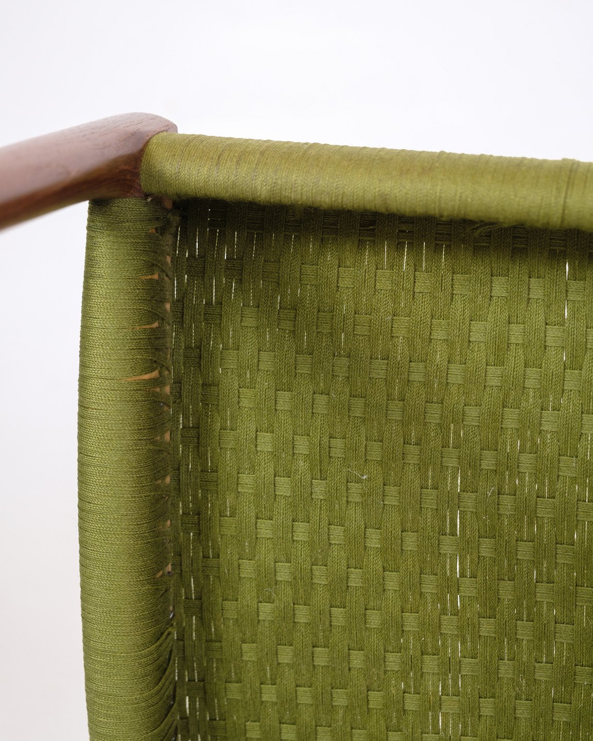 Set of 6 Dining Chairs - Model 77 - Teak & Green Paper Wicker - Niels O. Møller - 1960s
