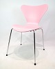Sæt på 6 Syver-stole model 3107 i en lyserød lakering. Designet af Arne Jacobsen og fremstillet af Fritz Hansen.