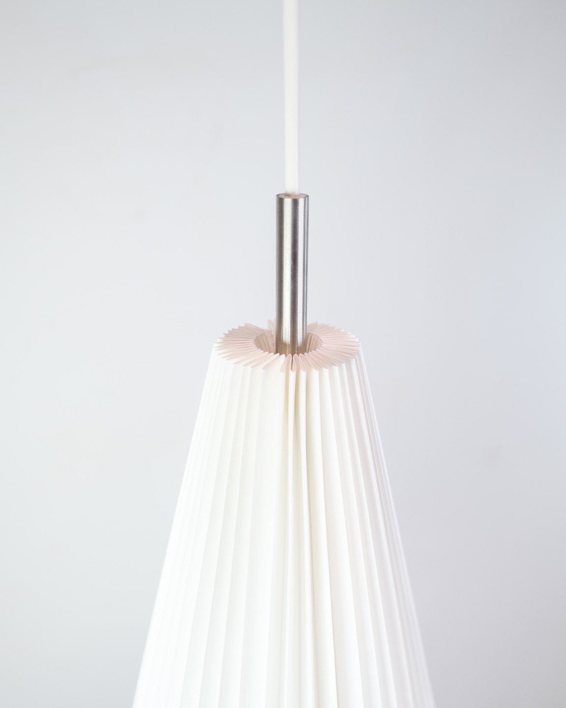 Sculptural pendant lamp from Le Klint, model 181 "Komet", designed by Poul Christiansen in 2003. The hand-folded shade in white plastic forms a teardrop-shaped silhouette, which spreads a soft, pleasant light without glare.