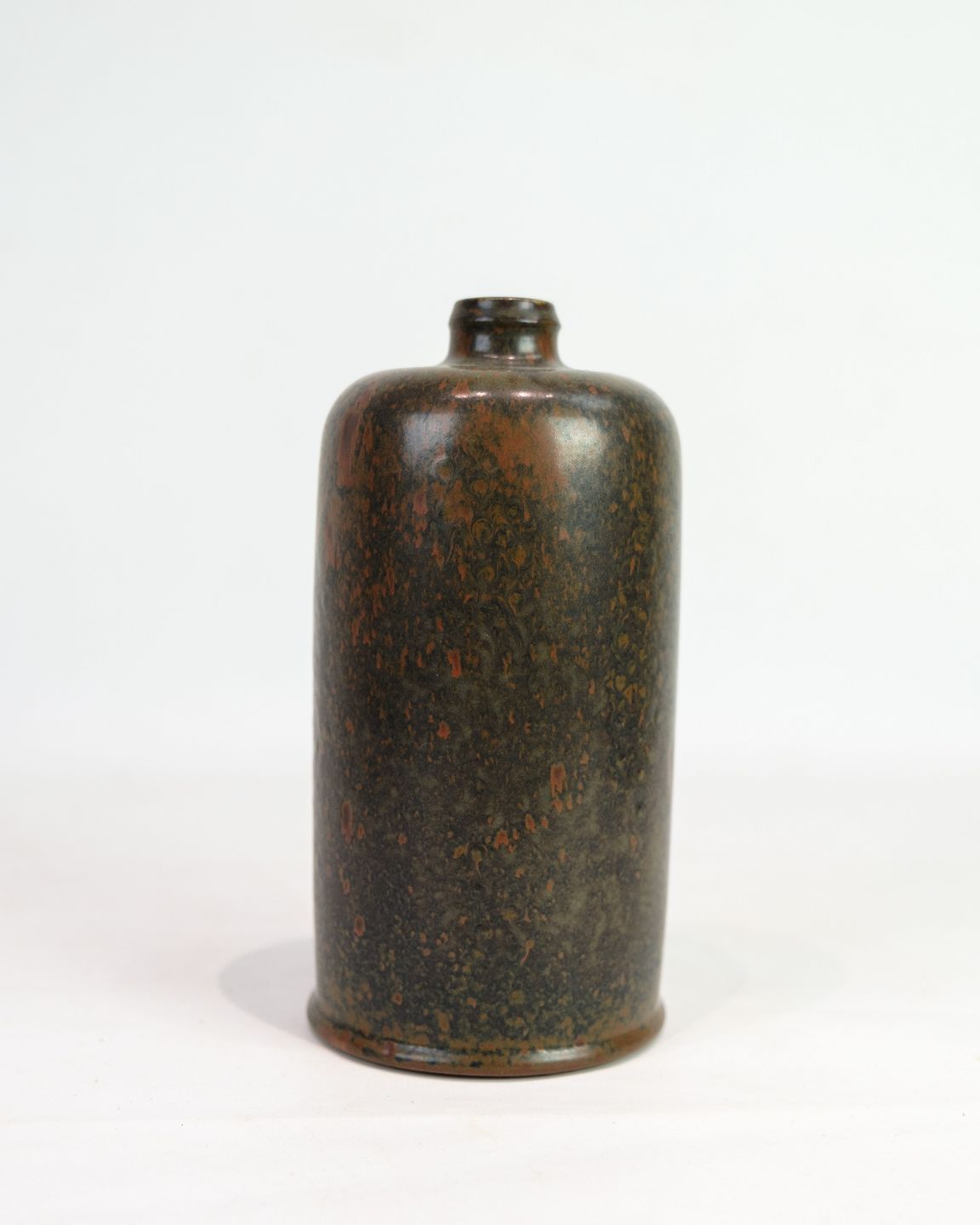 Keramisk vase fra 1940’erne designet af Nathalie Krebs for Saxbo. Udført i karakteristisk stentøj med nuanceret glasur i varme orange og brunlige toner.