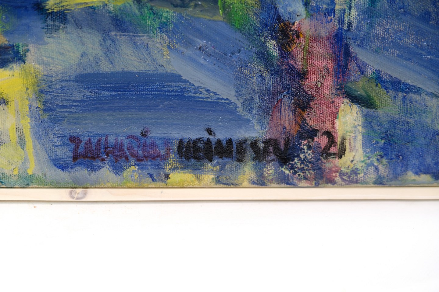 Farverigt maleri udført af den færøske kunstner Zakarias Heinesen (f. 1936), malet med oliemaling på lærred. Motivet viser udsigt over Tórshavn i karakteristisk ekspressiv stil, hvor lys og farver smelter sammen i et atmosfærisk helhedsbillede. Signeret nederst til højre og dateret 2021.