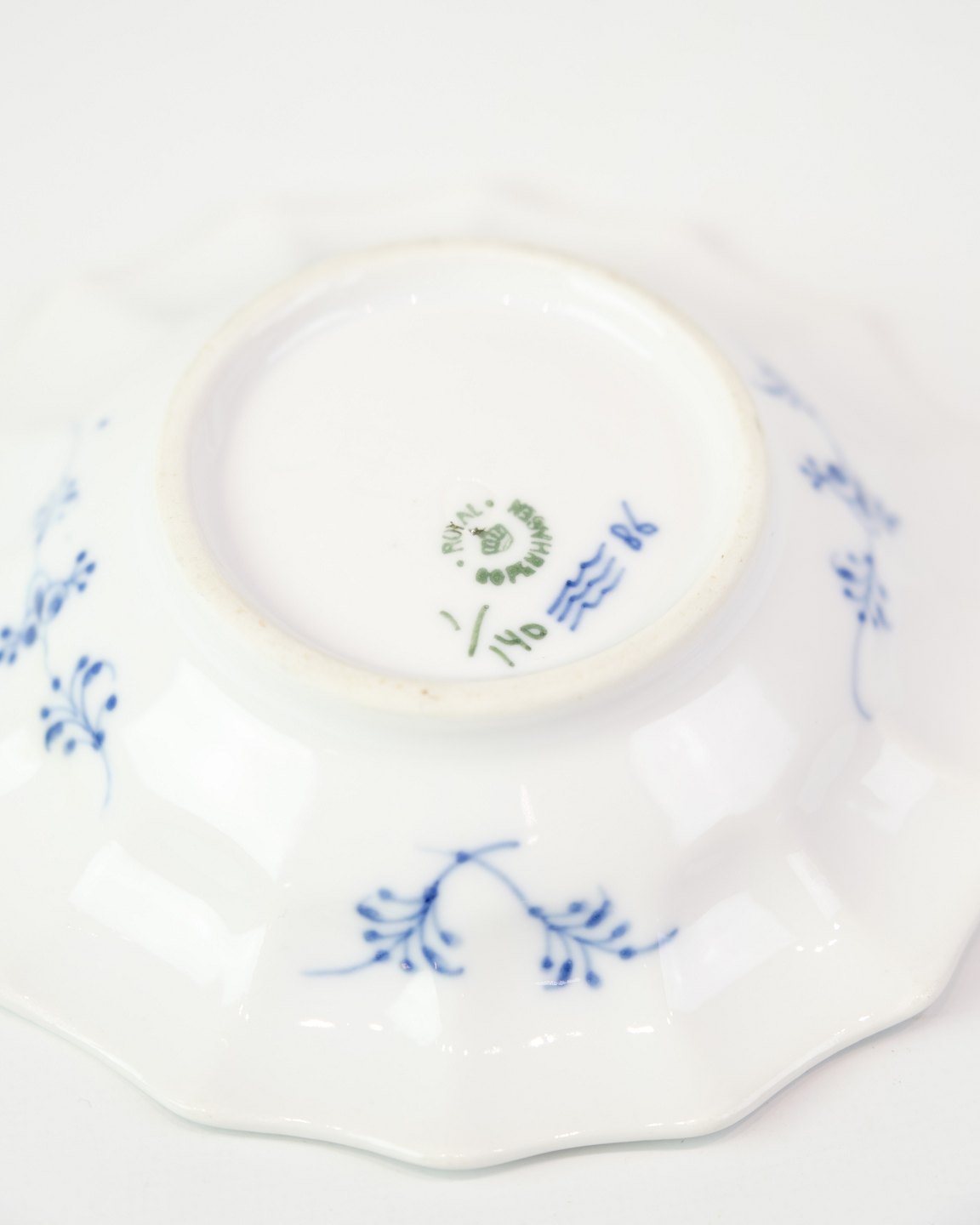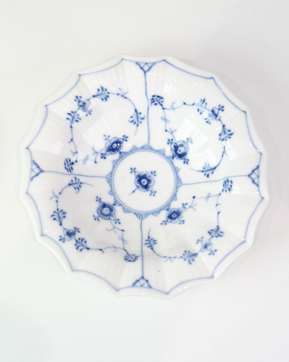 Elegant wave bowl from Royal Copenhagen in the iconic blue fluting pattern. The bowl has model number 140/1 and a diameter of 15 cm. Made of hand-painted porcelain with classic blue decoration.