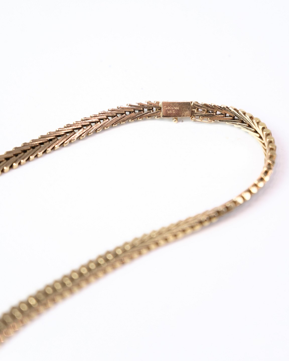 Please contact us for price informationGeneva necklace in 14 kt. gold, stamped 585, signed Guldvirke. With box clasp and safety clasp.