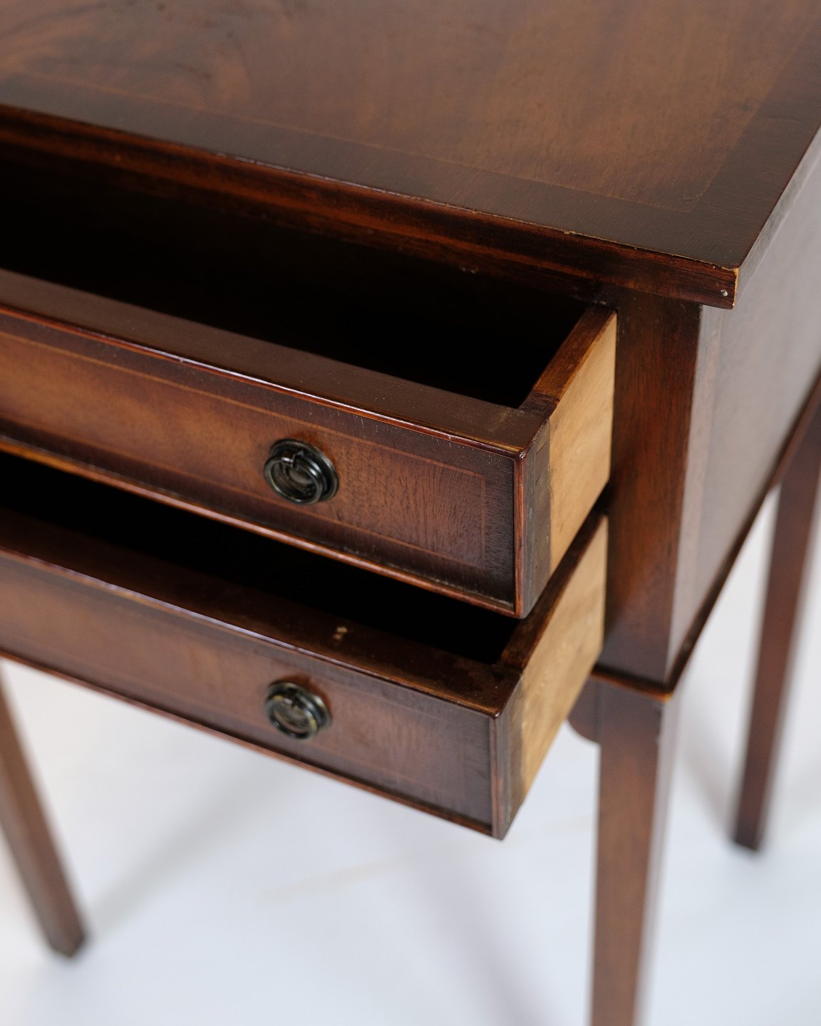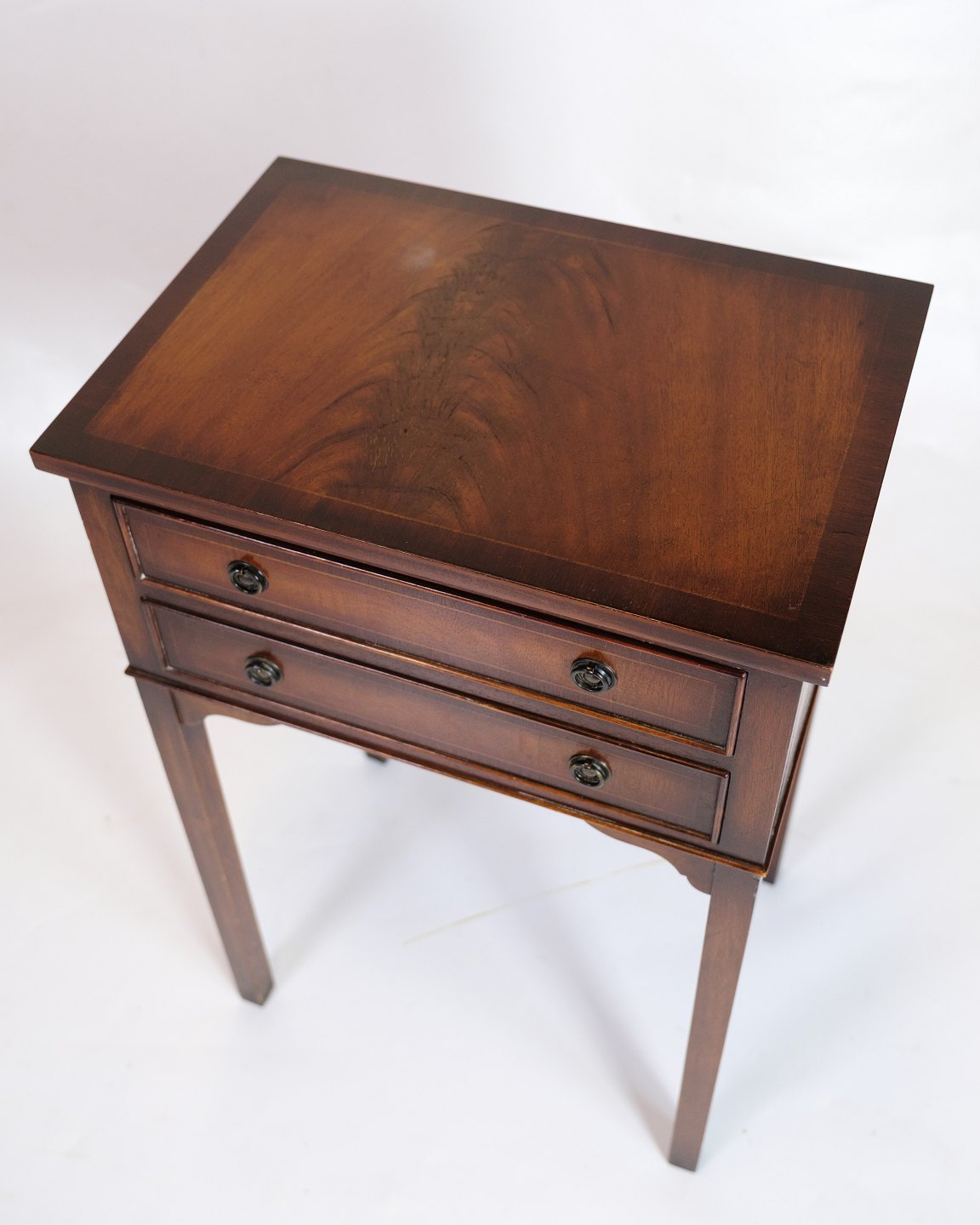 SolgtAntikt sidebord i mahogni med 2 skuffer og originale messinggreb, ca. 1940.