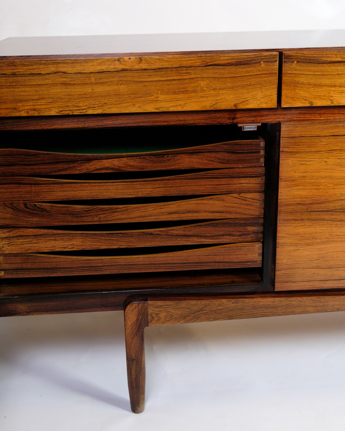 Please contact us for price informationSideboard designed by Ib Kofod-Larsen, model FA66, produced by Faarup Møbelfabrik in the 1960s. The sideboard is made of rosewood with a beautiful grain pattern and a front with four sliding doors and a drawer section behind one door.